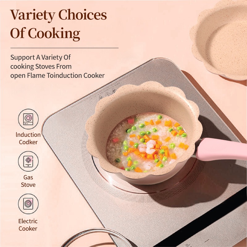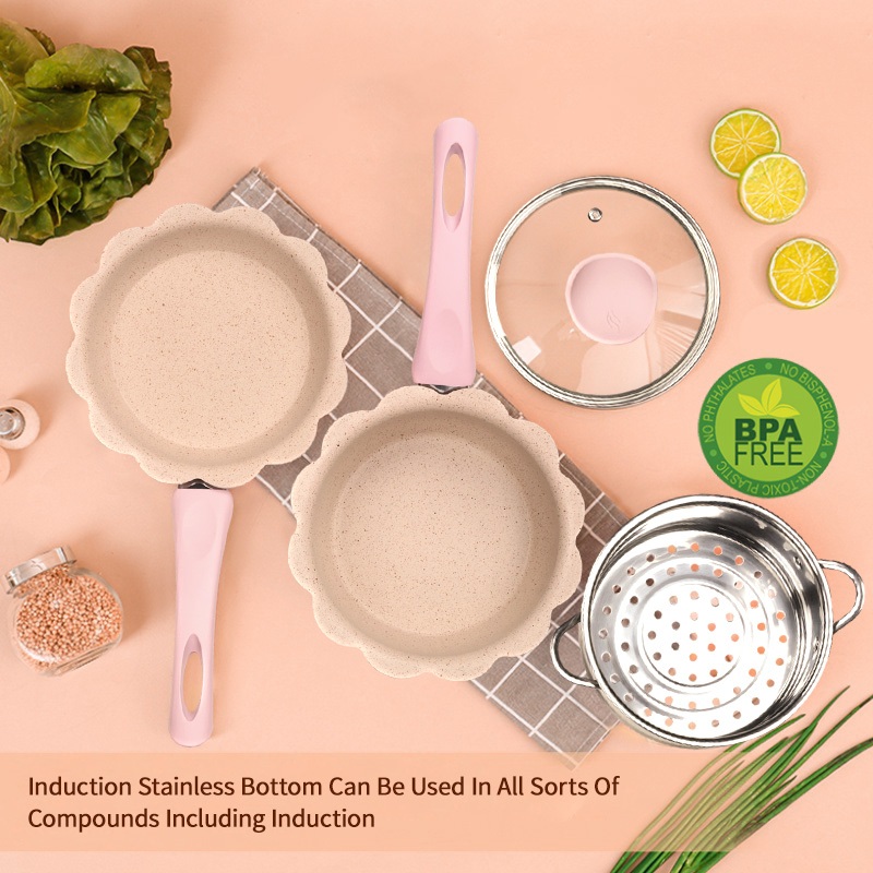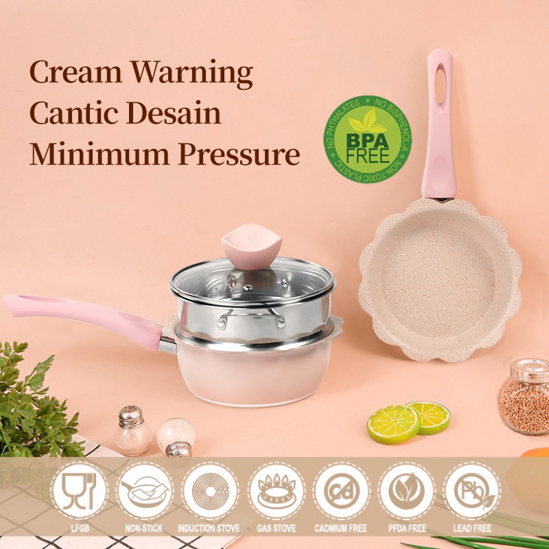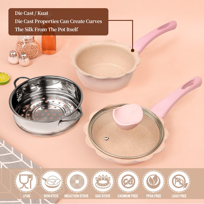 Innerwell 16 ซม. หินไมฟานไม่ติด ชุดหม้อต้มน้ำนมสีชมพูขนาด พร้อมที่นึ่ง เหมาะสำหรับเตาทุก