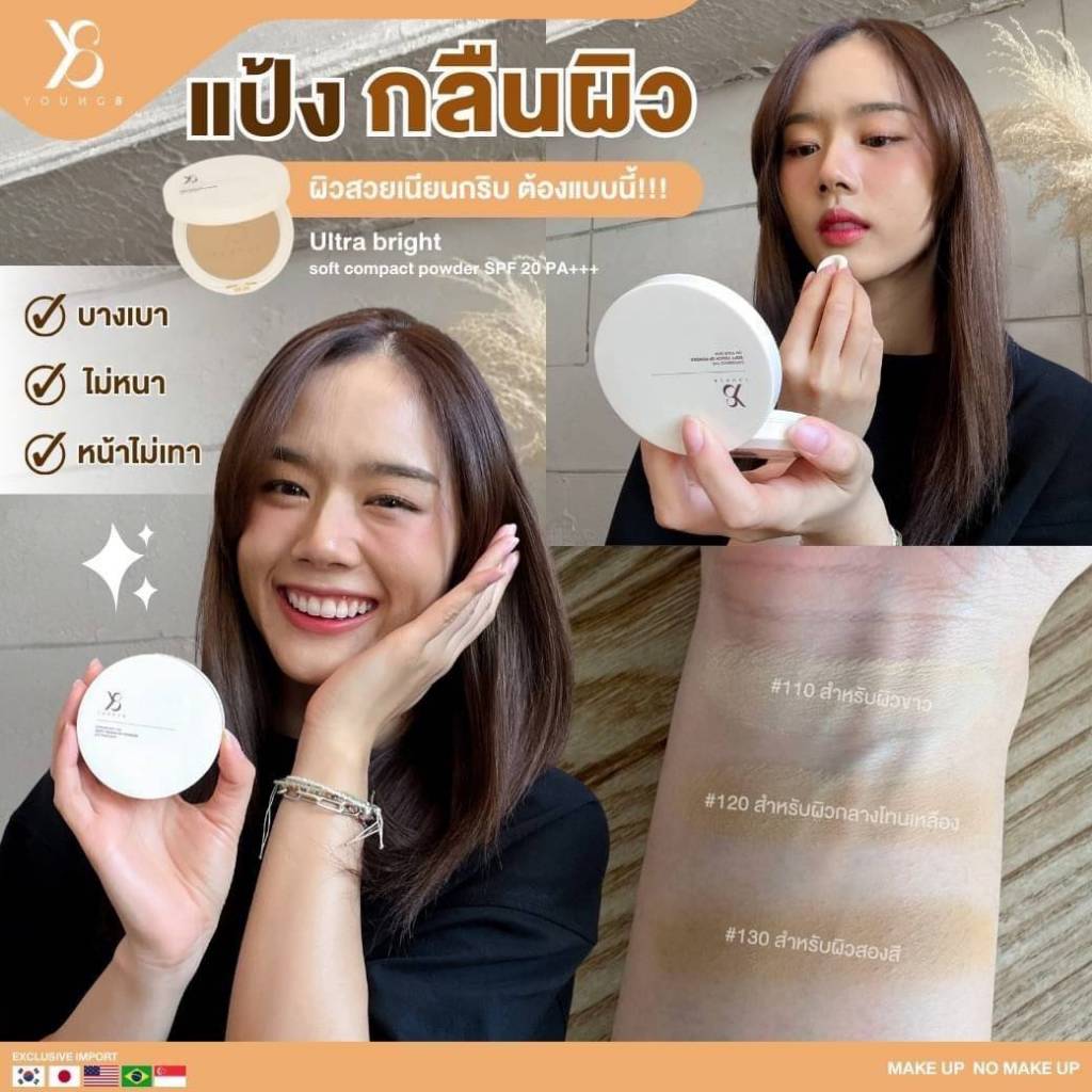 Y8 Ultra Bright แป้งเบลอฝ้า 10g ปรับผิวเนียน ลดหมองคล้ำ SPF20 PA+++ มี 3 เฉดสี