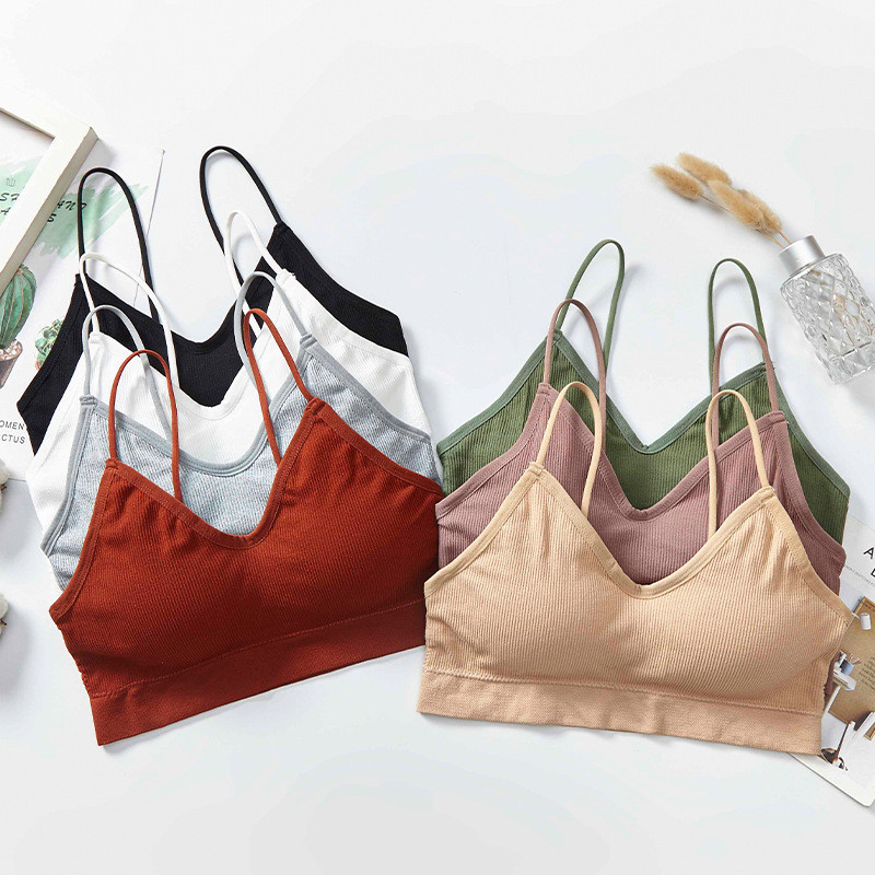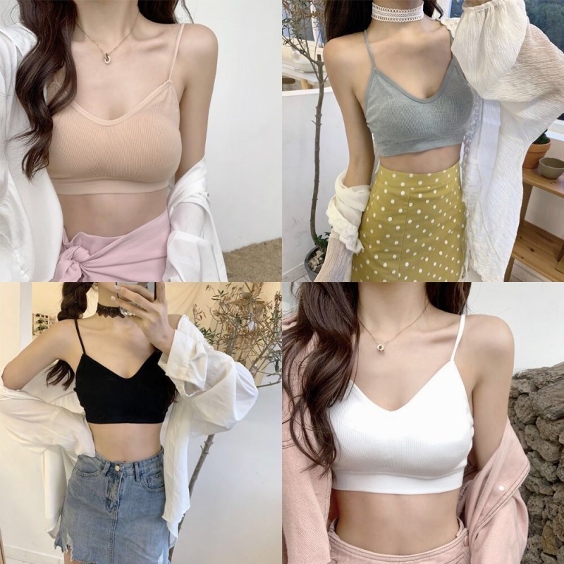 NY005 สปอร์ตบรา สายเดี่ยวผ้าร่อง🏖️เสื้อครอป แบบสวม มี7สี มีฟองน้ำ บราสายเดี่ยว บราผ้านิ่ม บราไร้ขอบ