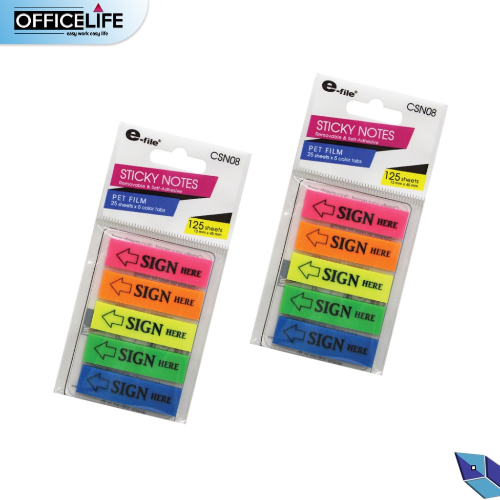 e-file (อี-ไฟล์) อินเด็กซ์โน๊ต โพสอิท Sticky Notes ฟิล์มอินเด็กซ์ ดัชนีคั่นหน้า รหัส CSN08 (จำนวน 1 แพ็ค)