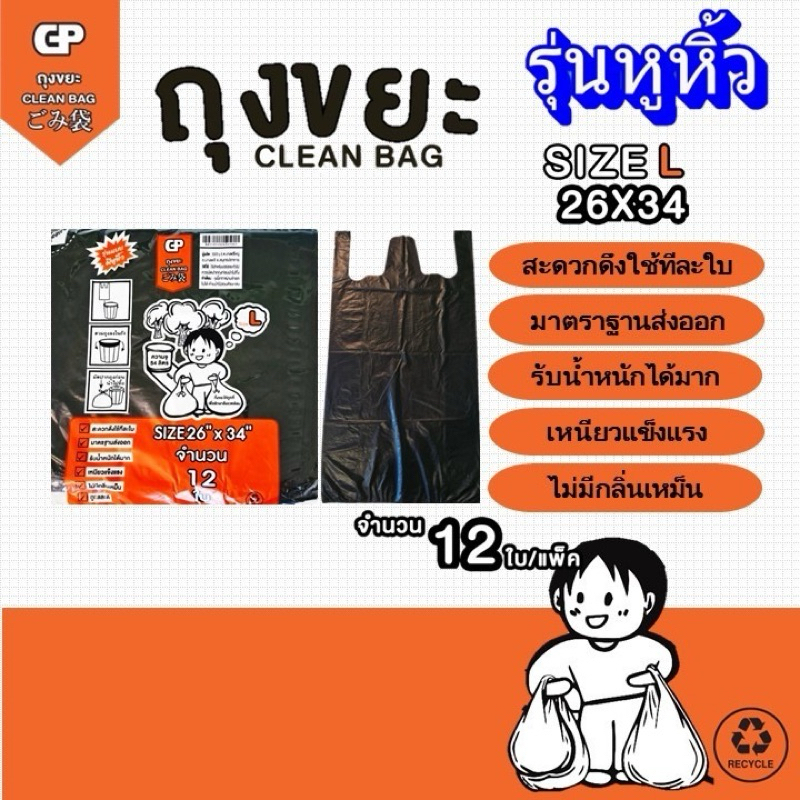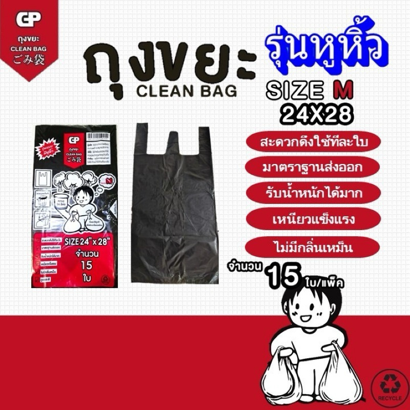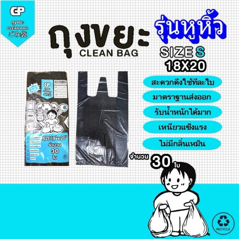 [รุ่นมีหูหิ้ว] ถุงขยะ Clean bag รุ่นบางแต่เหนียว ไม่มีกลิ่นไม่พึงประสงค์ คุ้มค่า จำนวนใบเยอะ คุณภาพเกรดส่งออก
