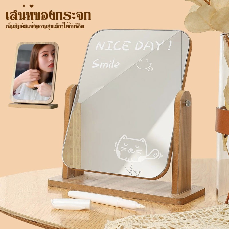 【Hillee ของแท้】ตระจกแต่งหน้า กระจก ตั้งโต๊ะ กระจกมินิมอล กระจกไม้มินิอล เรียบง่ายและทันสมัย สไตล์เกาหลี