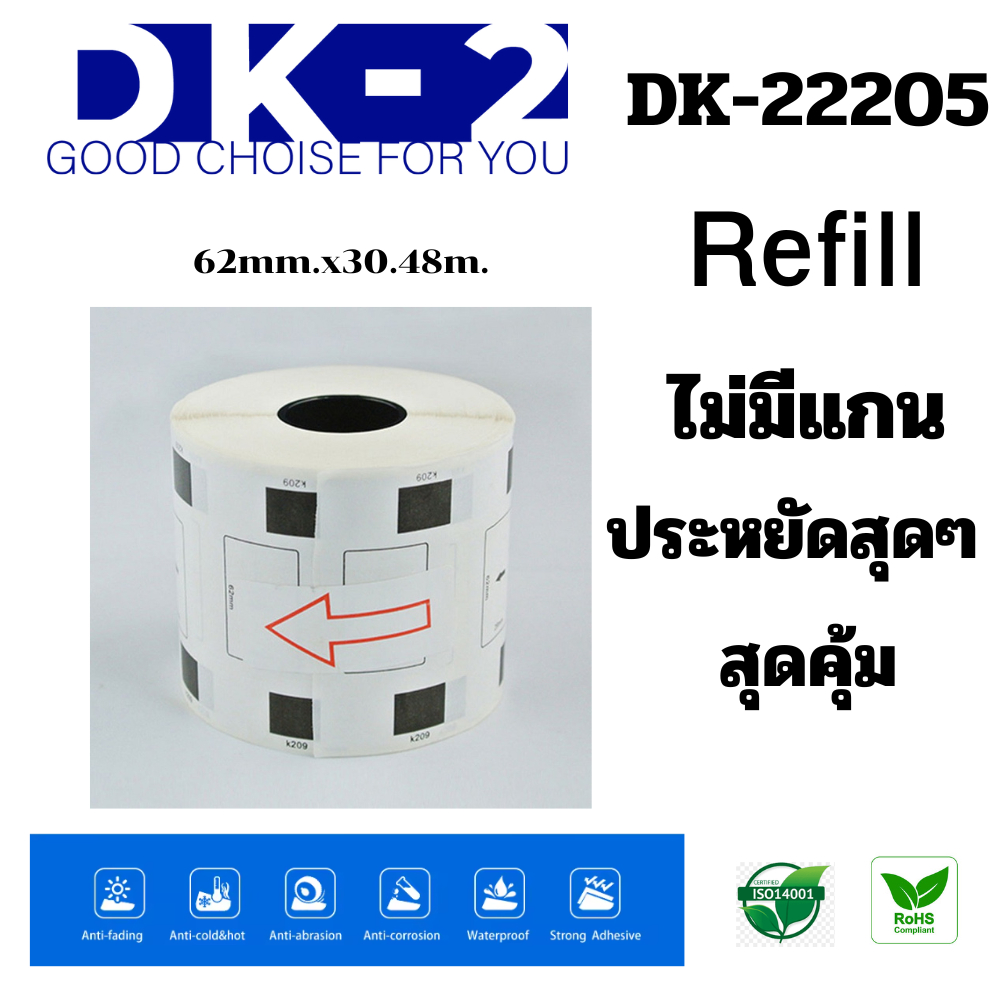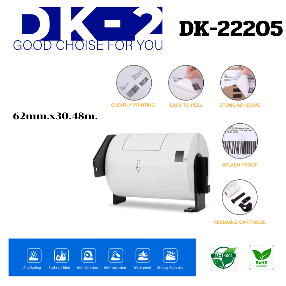 dk-2 เทปกระดาษต่อเนื่อง รุ่น DK-22205 ขนาด 62mm x 30.48m. ราคาถูก ส่งจากไทย ออกใบกำกับภาษีได้