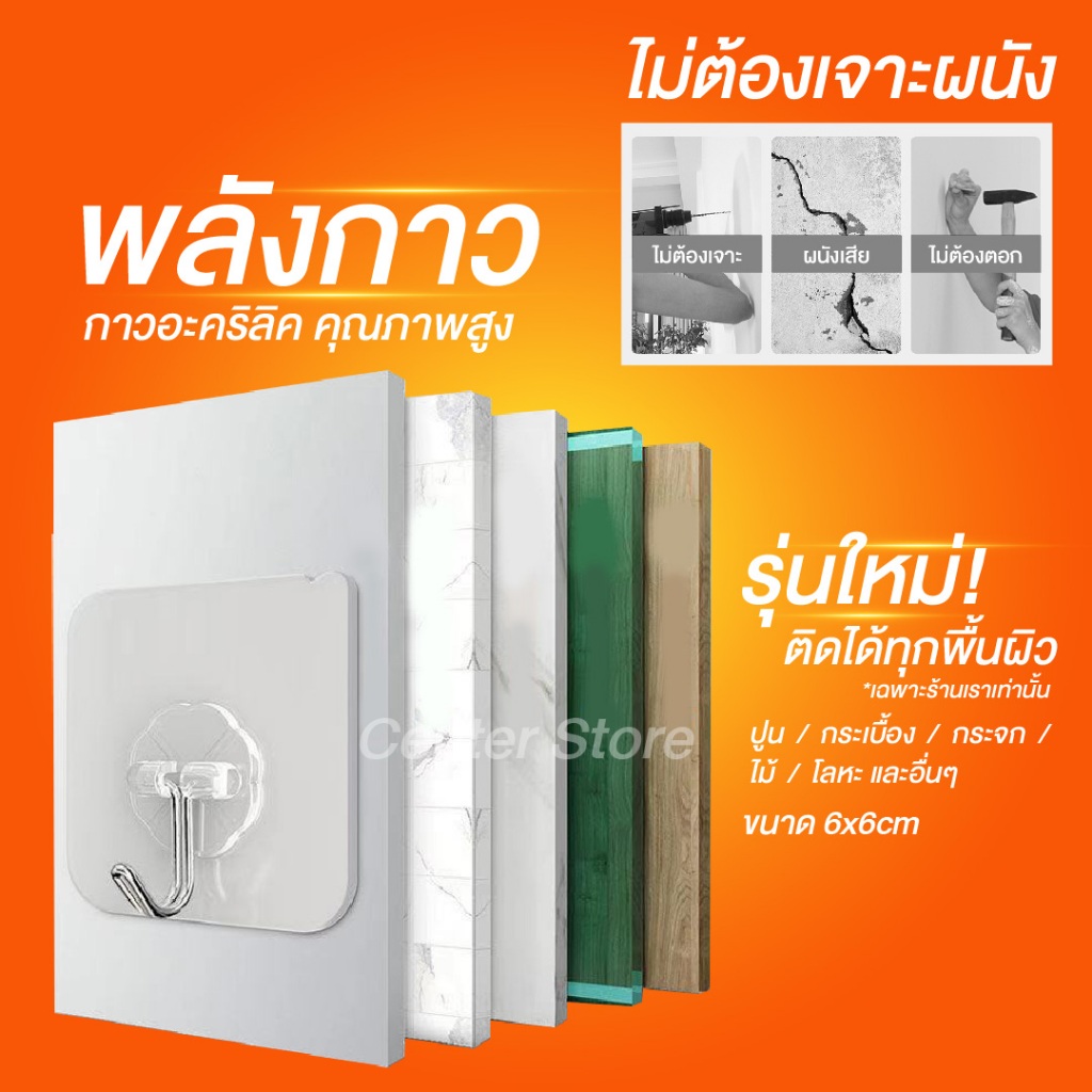 ตะขอแขวนผนังติดผนัง ไม่ต้องเจาะ กาวอะคริลิคคุณภาพสูง แขวนของได้อเนกประสงค์ ของแท้ ติดทน กาวหนา