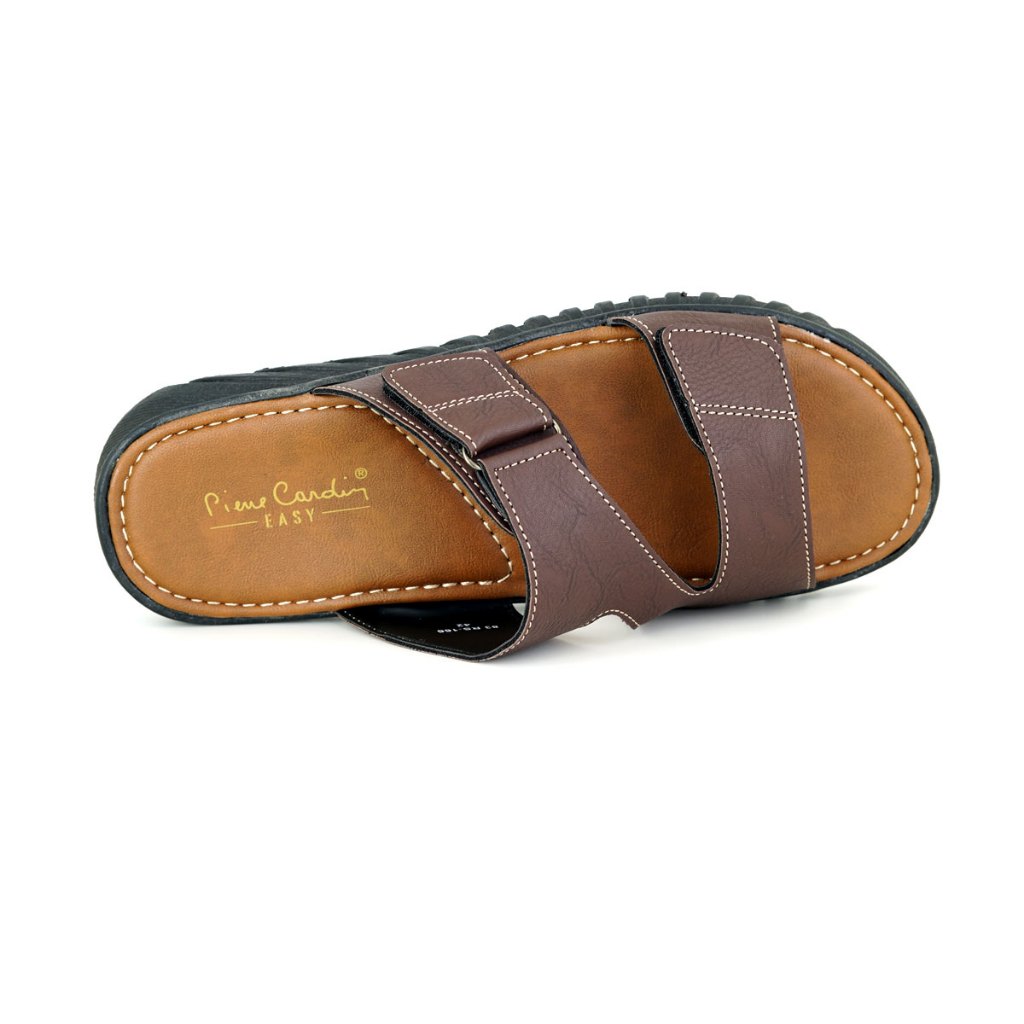 รองเท้าแตะผู้ชาย Pierre Cardin หนังสังเคราะห์คุณภาพสูง ดีไซน์นุ่มสบาย พื้นรองเท้ากันลื่น – สีน้ำตาล รุ่น 83RS166