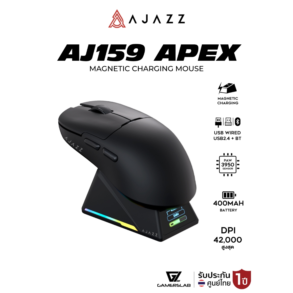 เมาส์เกมมิ่ง Ajazz AJ159 Apex Meteroite 8K Tri-Mod Wireless Magnetic Charginig Mouse Wired+2.4+BT