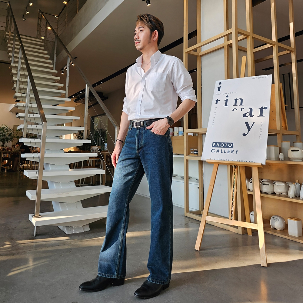 Golden Zebra Jeans กางเกงยีนส์ชายแฟชั่นขากระบอกใหญ่ ฟอกสีดาร์กบลู(Dark Blue) #209DB