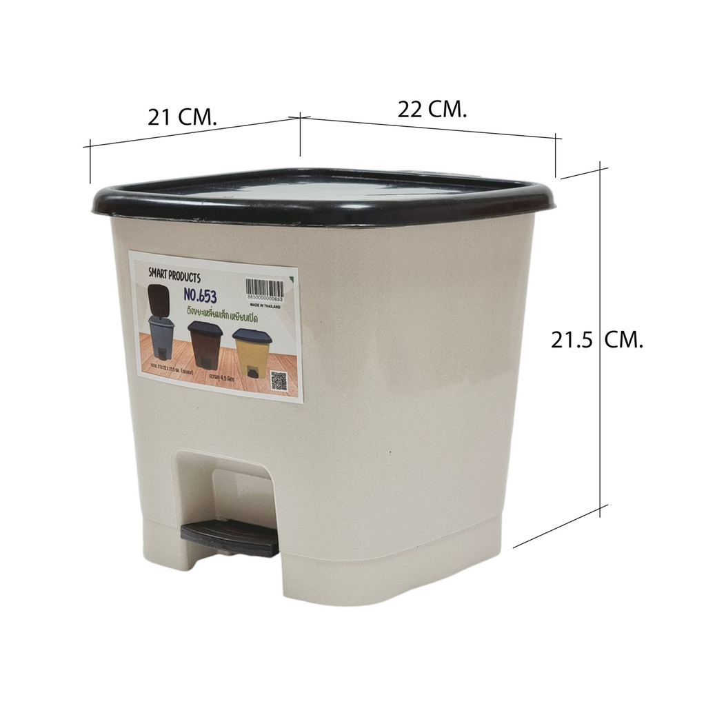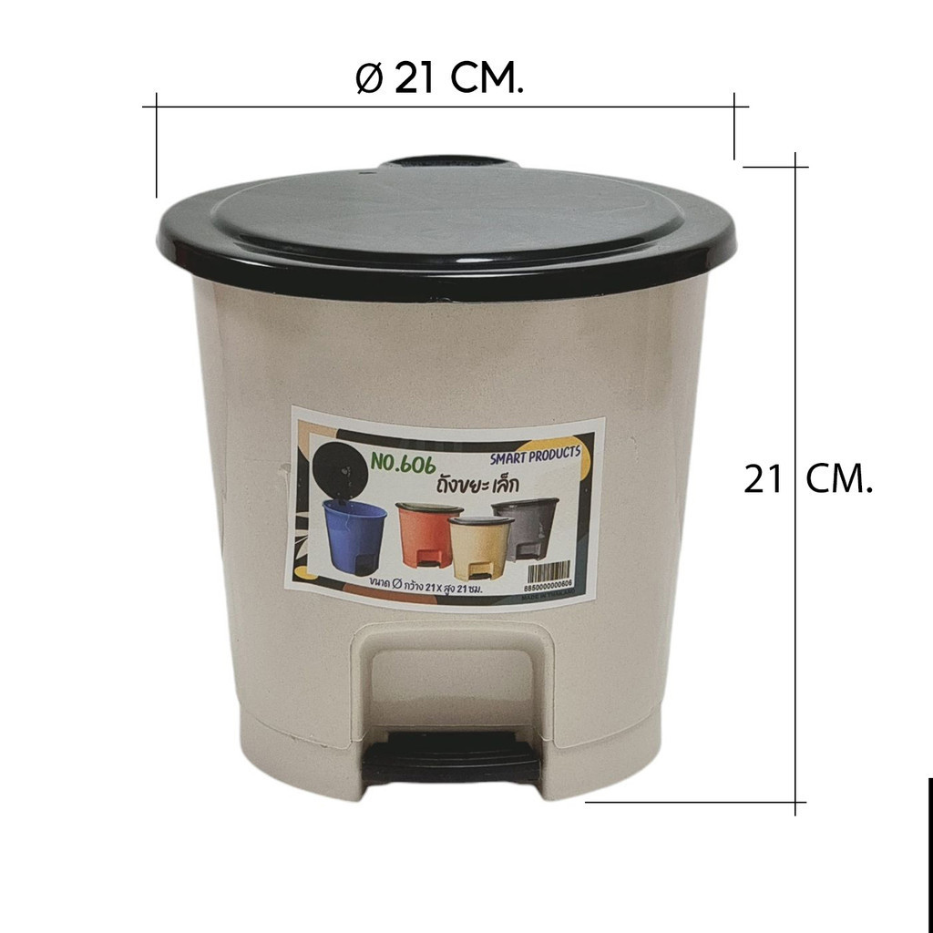 ถังขยะ (คละสี) 4.5 ลิตร ไซส์เล็ก แบบเหยียบเปิด ทรงกลมและทรงเหลี่ยม แบรนด์ Smart produck รุ่น 606 กับ 653