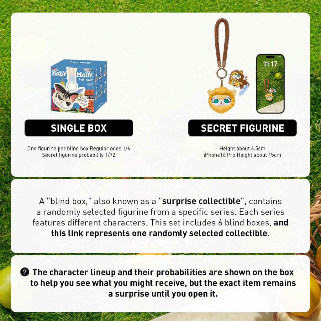 POP MART Baby Molly & Baby Tabby Series-Pinch Pendant Blind Box Action Toys Figure Birthday Gift Kid Toy