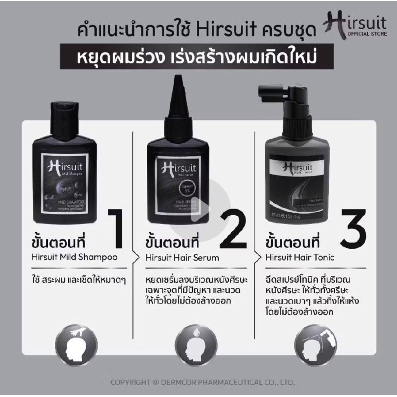 Hirsuit (Tonic, Serum, Shampoo) ผลิตภัณฑ์บำรุงเส้นผม และหนังศีรษะ
