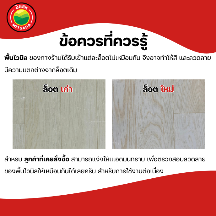 เสื่อน้ำมัน กว้าง2เมตร หนา1.2มิล กันน้ำ/ลื่น หลังกำมะหยี่ ราคาต่อ1เมตร PVC ลายไม้/หิน ปูพื้น VINYL มิตสห