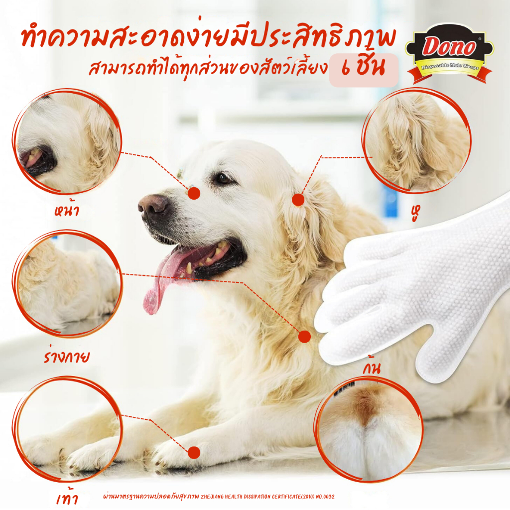 โดโน่ถุงมืออาบน้ำแมว ถุงมืออาบน้ำสุนัข ถุงมือเช็ดทำความสะอาดสัตว์เลี้ยง เนื้อหนาชนิดสวมห้านิ้ว 6 ชิ้น