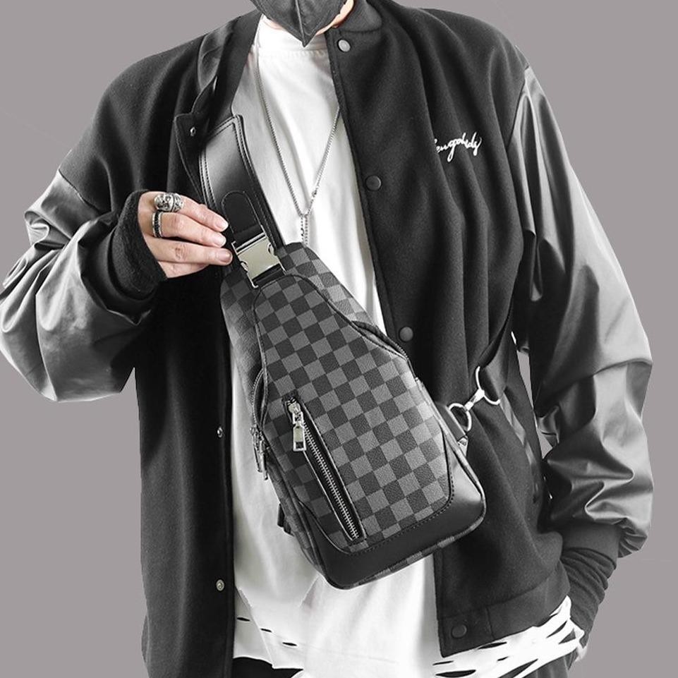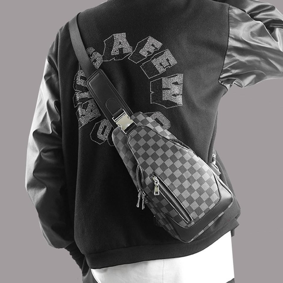 XM-7005 กระเป๋าคาดอกลายสก็อตผู้ชายแฟชั่น กระเป๋าสะพายข้างลายสก็อตลำลอง Men Bags