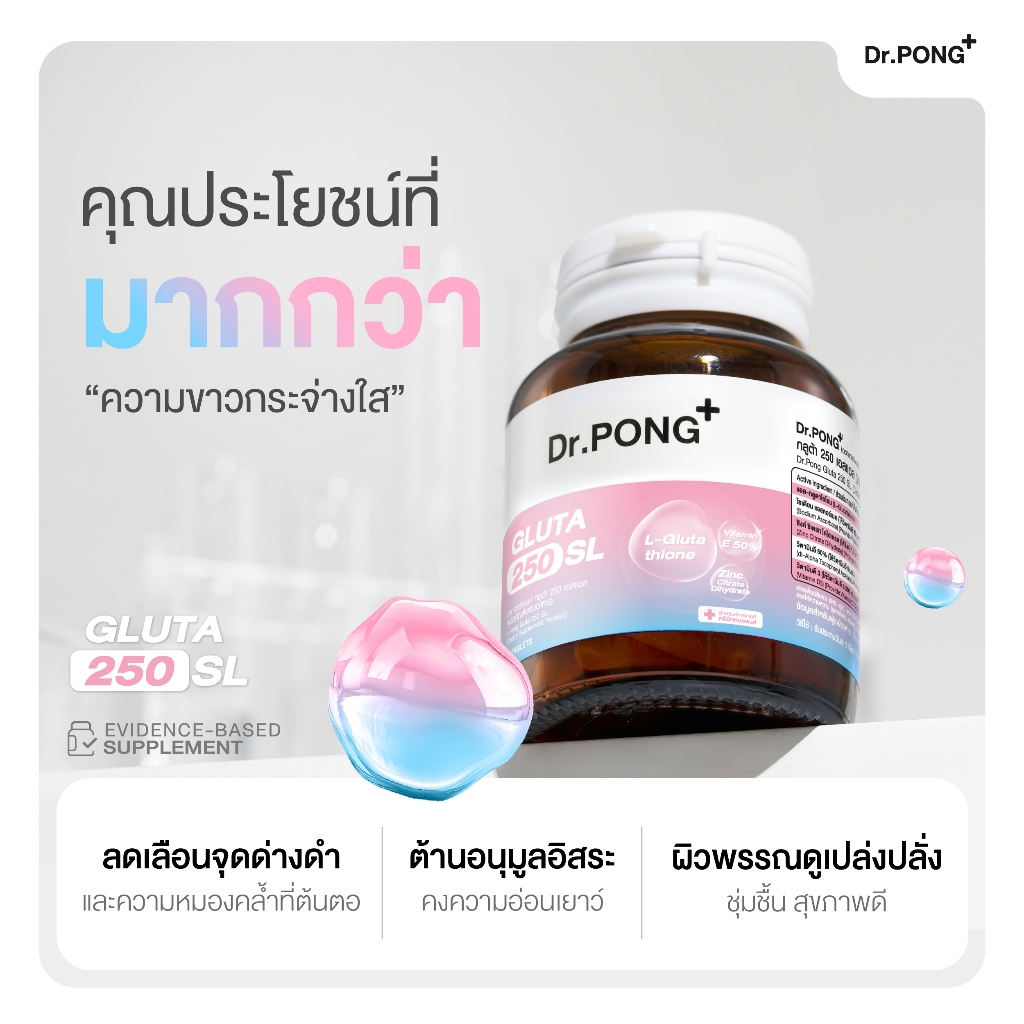 Dr.PONG GLUTA 250 SL กลูตาไธโอนเพื่อผิวกระจ่างใส สูตร Sublingual