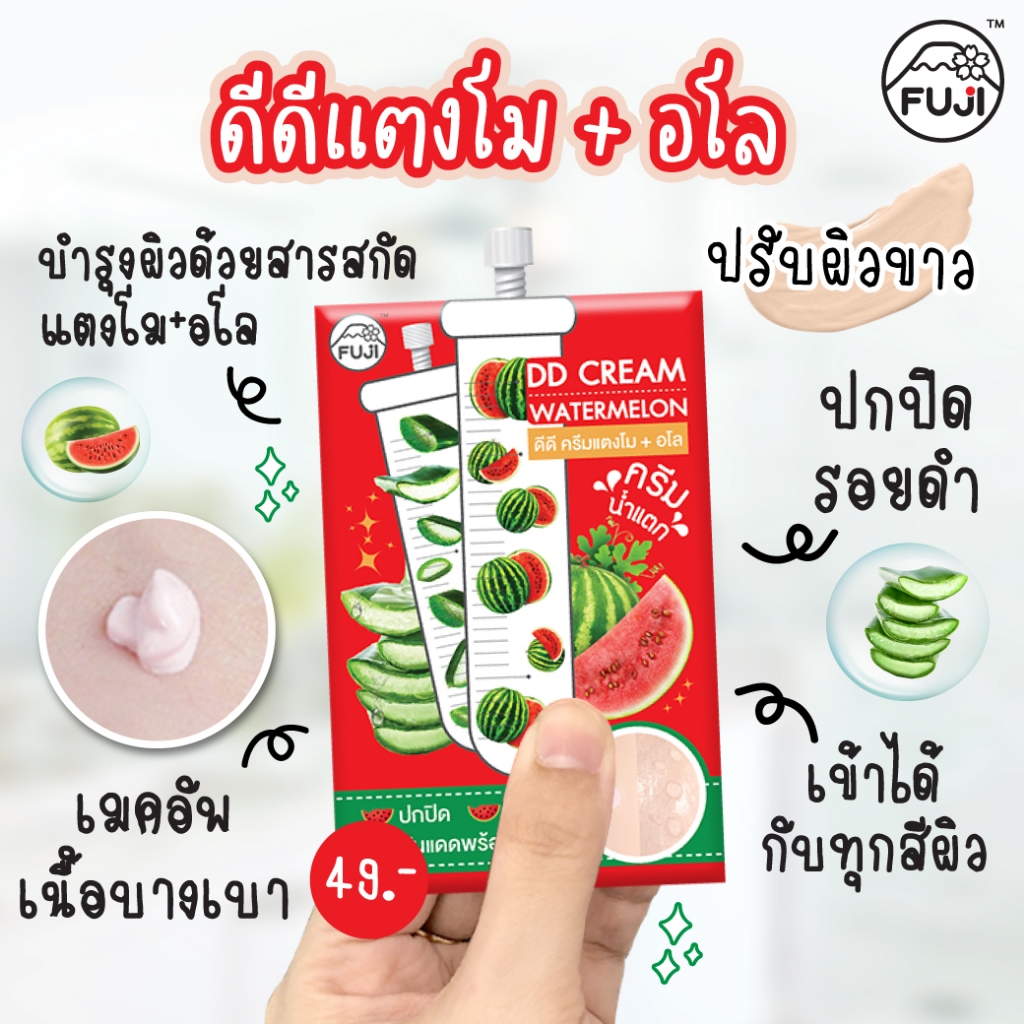 ฟูจิ ดีดีวอเตอร์เมล่อน ครีม ดีดีแตงโม+อโล (สูตรใหม่) (กล่อง6ซอง) FUJI DD Watermelon Cream 10 g.