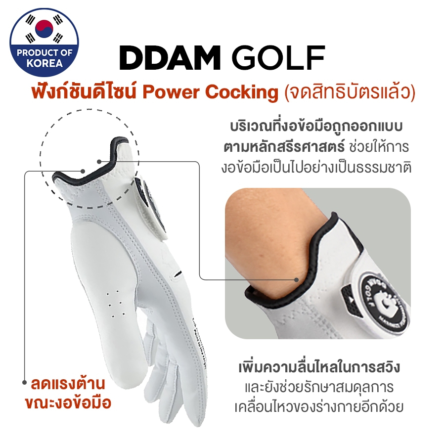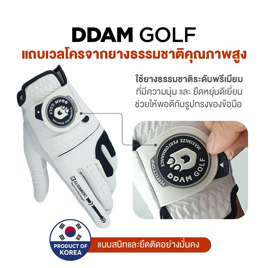 DDAM GOLF ถุงมือกอล์ฟผู้ชาย หนังแกะผสมผ้าไมโครไฟเบอร์ สีขาวดำ 1 ชิ้น ns korea