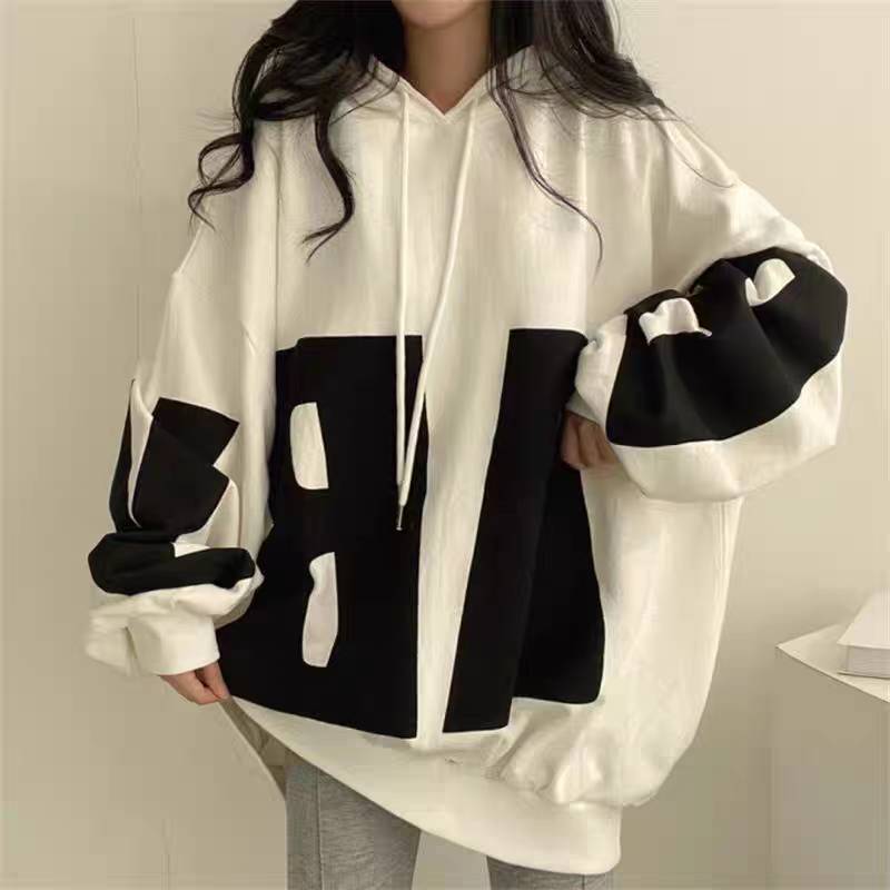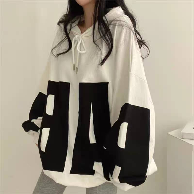 เสื้อแขนยาวฮู้ดแบบสวม Oversize (อก 58 นิ้ว) แฟชั่นยอดฮิต พิมลาย AB ไม่มีกระเป๋า ผ้าคอตตอล B95