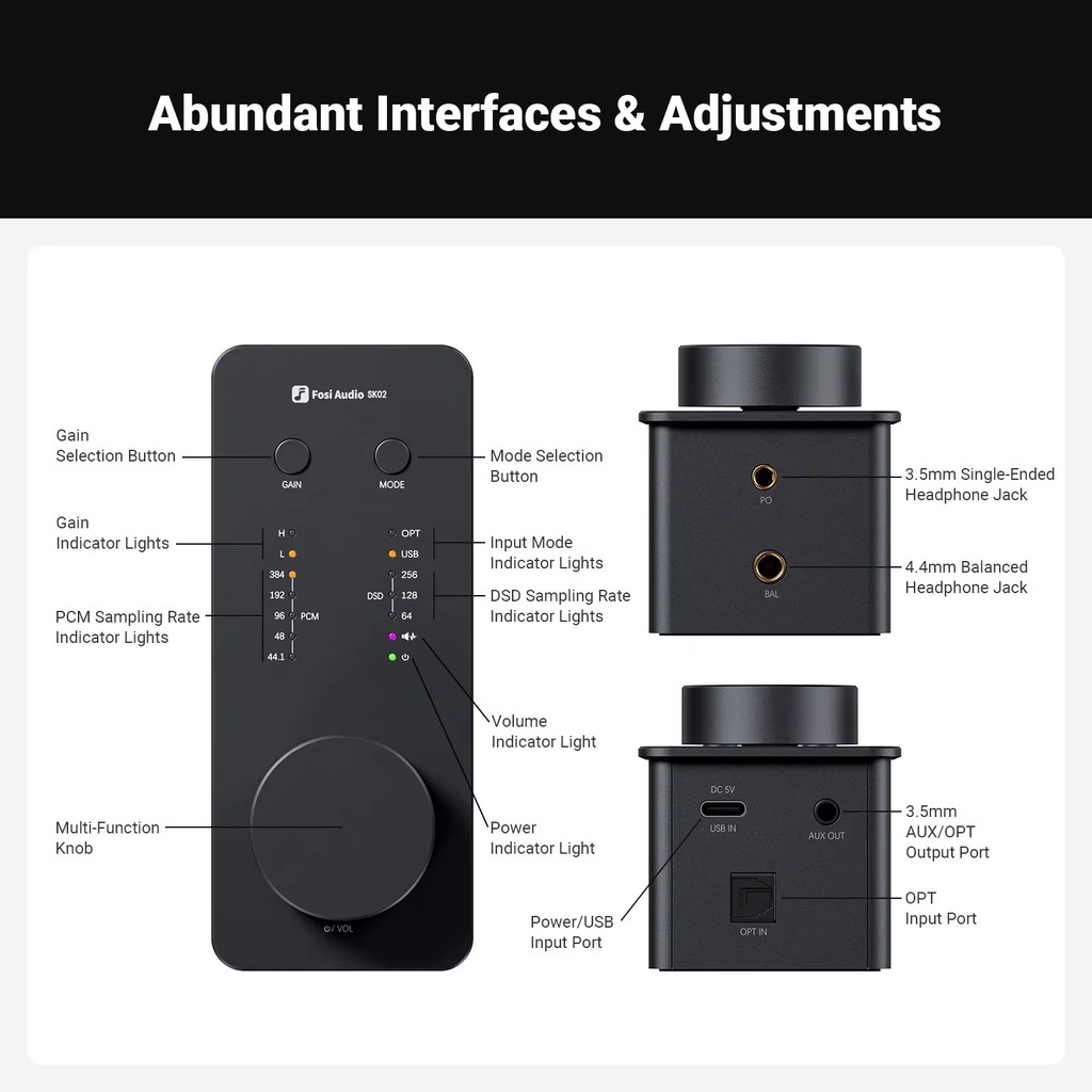Beisi เสียง SK02 USB DAC เครื่องขยายเสียงหูฟัง Amp ถอดรหัสเสียงสนับสนุน DSD 256 PCM สําหรับ 3.5 มม.และ 4.4 มม.หูฟัง Balanced