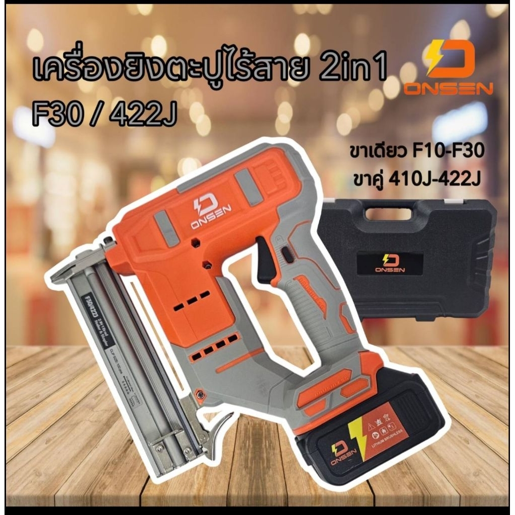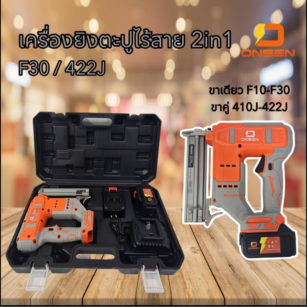 ONSEN เครื่องยิงตะปูไร้สาย แม็กไร้สาย 2in1 (ขาเดียว F10-F30 / ขาคู่ 410J-422J) แบตเตอรี่ก้อนใหญ่ 2 ก้อน พร้อมกล่องเก็บ