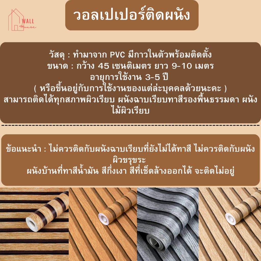 ลายไม้ระแนง วอลเปเปอร์ติดผนัง ขนาดกว้าง0.45ซม.x9-10เมตร ติดตั้งง่าย มีกาวในตัว สติ๊กเกอร์ติดผนังห้อง วอลเปเปอร์ติดบ้าน