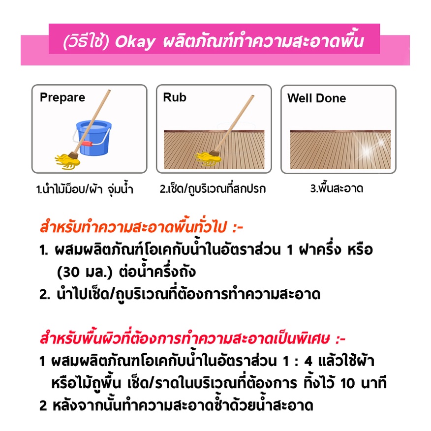 OKAY โอเคน้ำยาทำความสะอาดพื้น FCPink700 น้ำยาถูพื้น กลิ่นฟลอรัล เฟรซ ถุงเติม 1 ถุง ขนาด 700 มล.