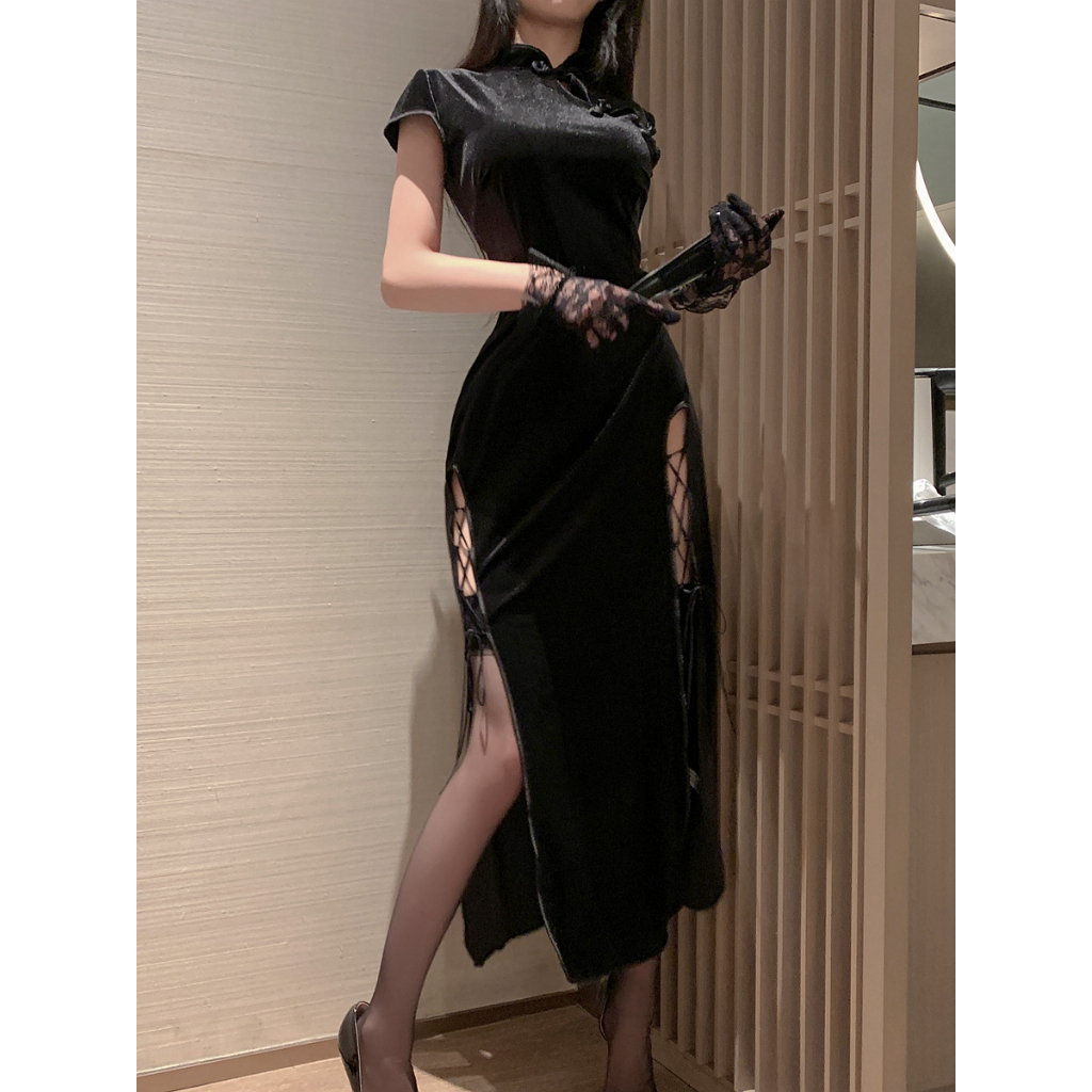 U Gonna S ชุดเดรสกี่เพ้า แขนสั้น คอจีน เซ็กซี่ เข้ารูป หรูหรา ไฮเอนด์ สไตล์โมเดิร์น แฟชั่นสําหรับผู้หญิง 2025 ชุดคลุมเสื้อขนาดใหญ่ Plus Size