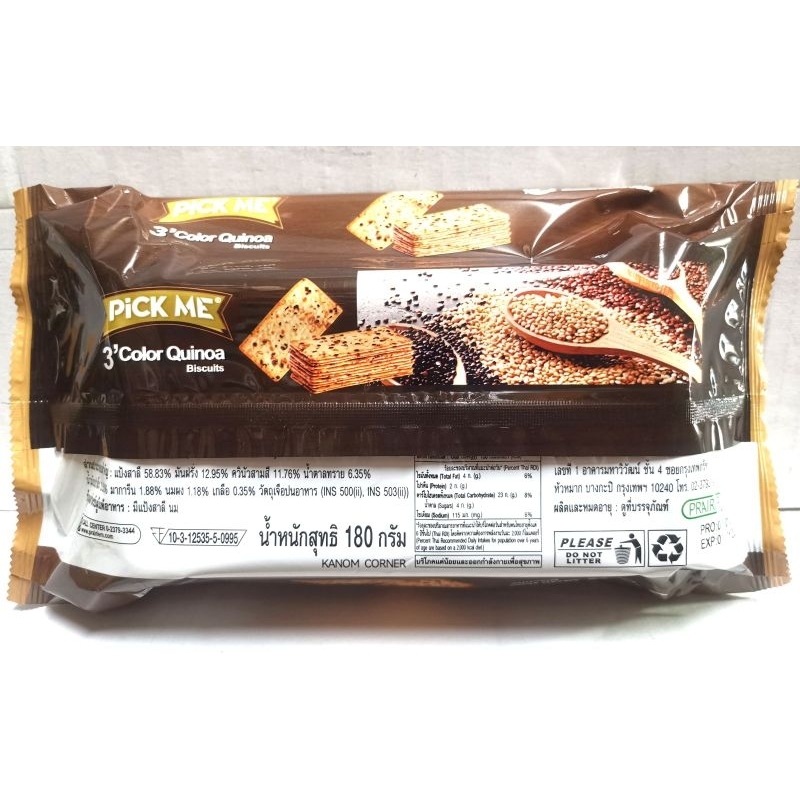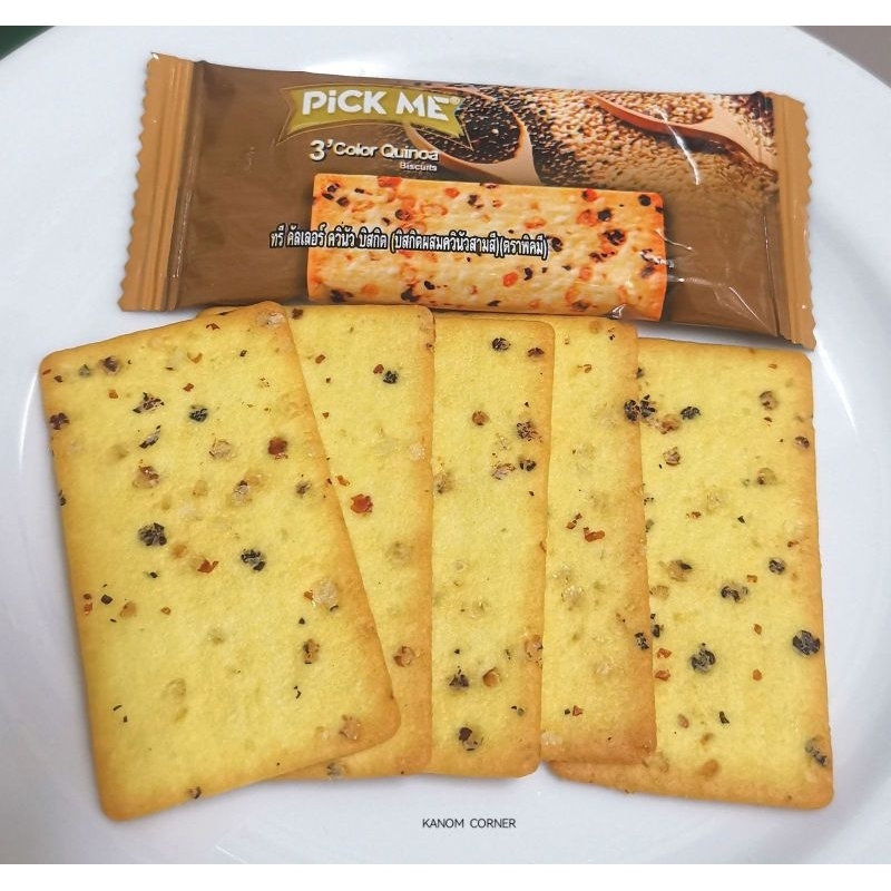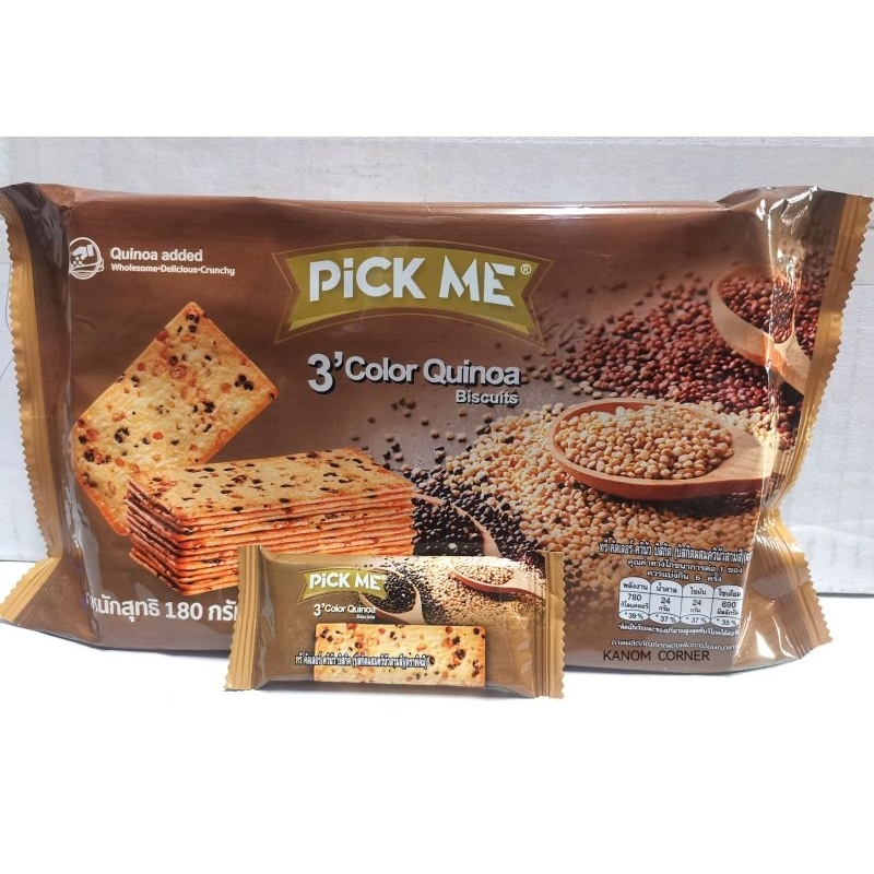 พร้อมส่ง Pick me 3 Color Quinoa Biscuits บิสกิตผสมควินัวสามสี ตราพิคมี 180 กรัม ทรี คัลเลอร์ ควินัว บิสกิต