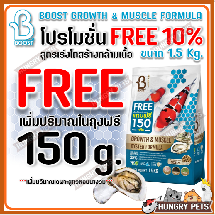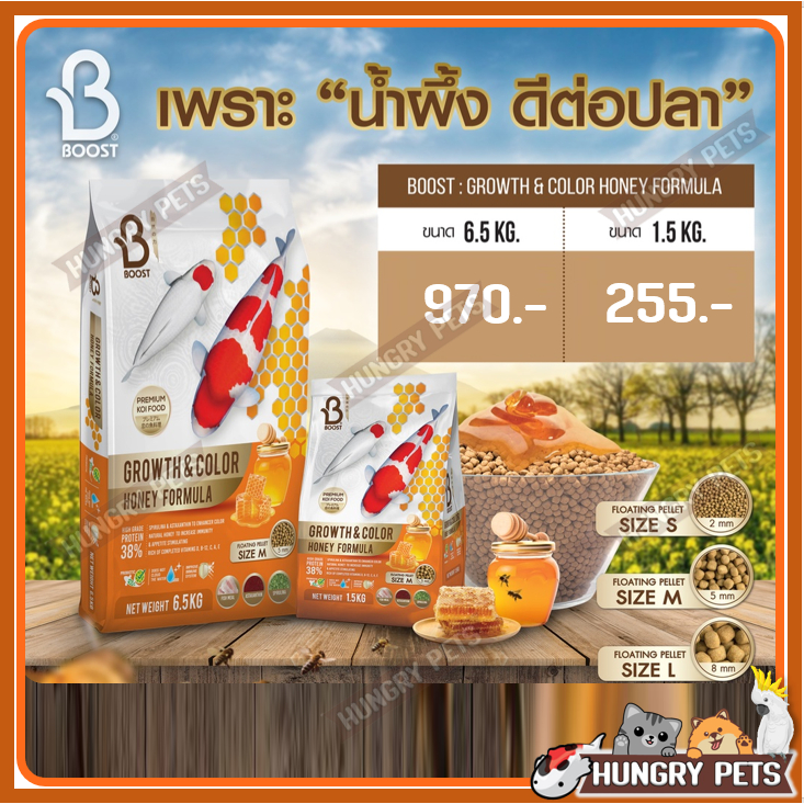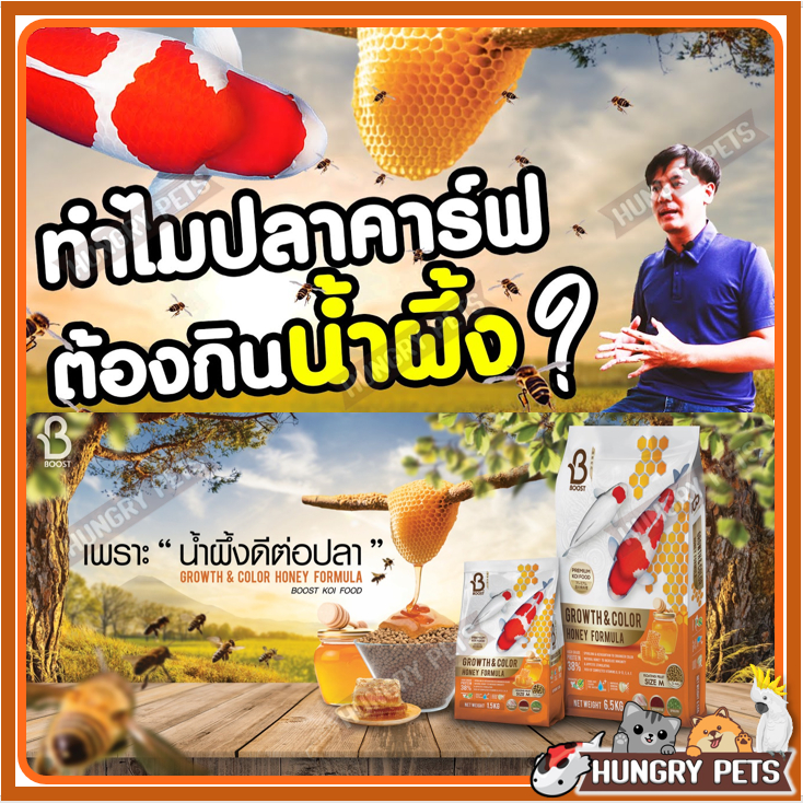 FREE📌150g.📍ล็อตใหม่ Exp ปี 2027 🐝สูตรน้ำผึ้ง อาหารปลาคาร์ฟ Boost Koi (บูสท์ โค่ย) ขนาด 1.5 กก.