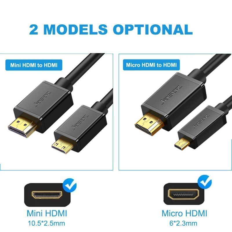 ⚡COD⚡Jasoz สาย Micro HDMI to HDMI เป็นสาย 4K สายวิดีโอ UHD สําหรับกล้องแท็บเล็ต แล็ปท็อป ทีวี PS5