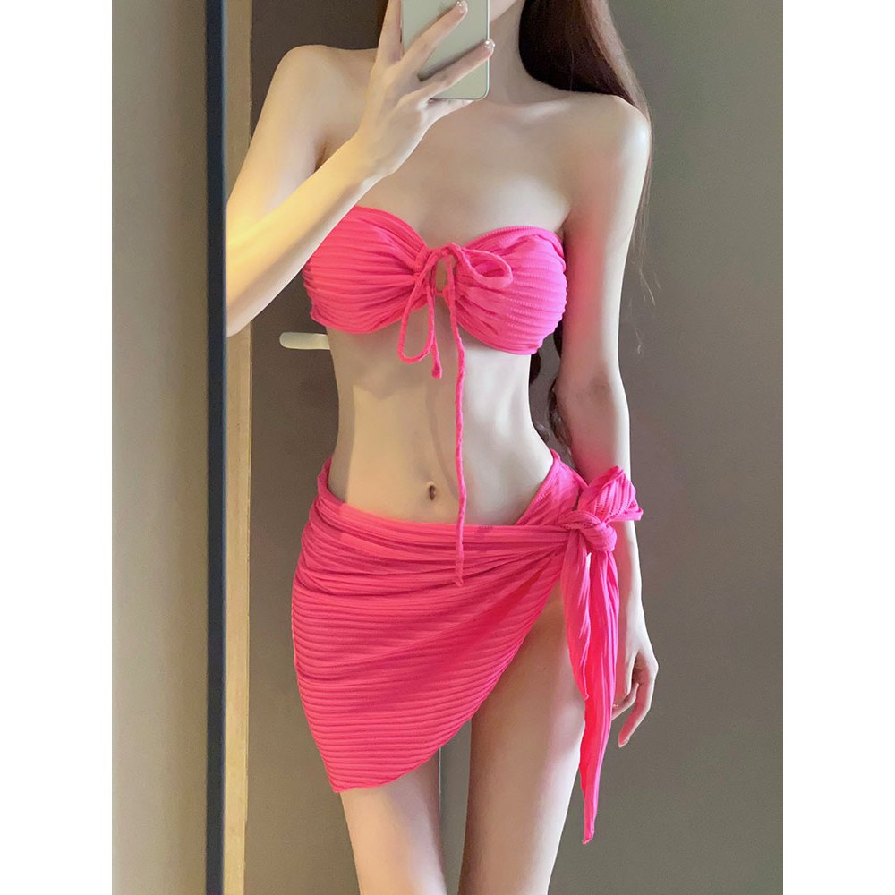 U Gonna S ชุดว่ายน้ําบิกินี่ แขนกุด เอวสูง เซ็กซี่ พร้อมผ้าคลุม ยืดหยุ่น 3 ชิ้น 2024