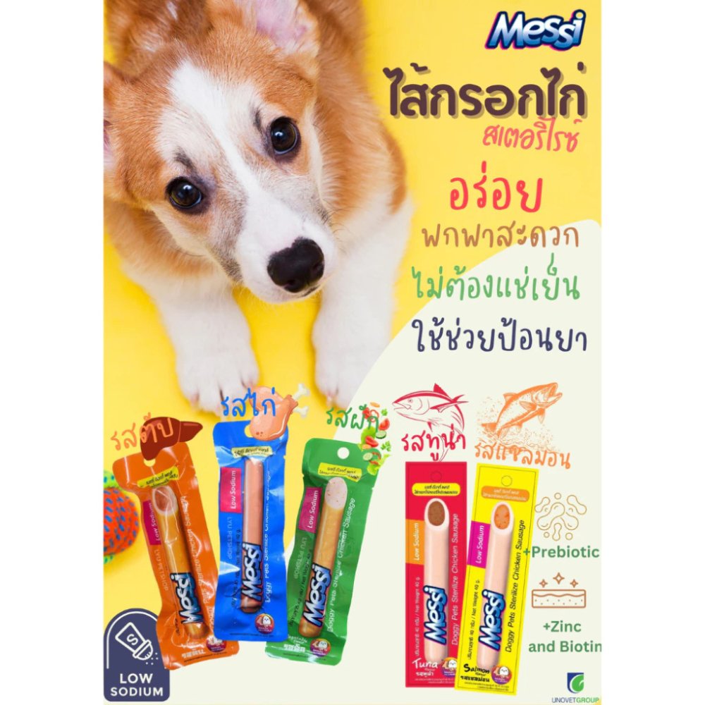 (แพ็ค 6 ชิ้น) Messi sterilize Chicken Sausage เมสซี่ สเตอริไรซ์ ไส้กรอกไก่ ขนาด 40g