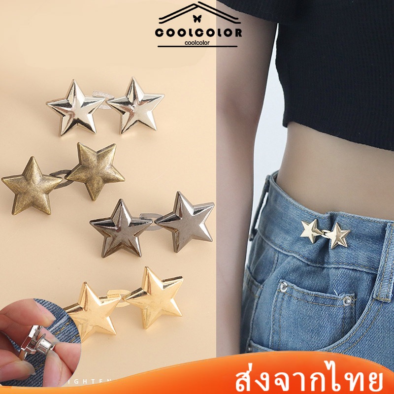 ในไทย💖กระดุมดาวตะขอเกี่ยวกางเกงเอวปรับได้แน่นไม่มีรอยต่อถอดออกได้โลหะปรับขนาดสําหรับเย็บกางเกงและใช้งานได้จริง.COD