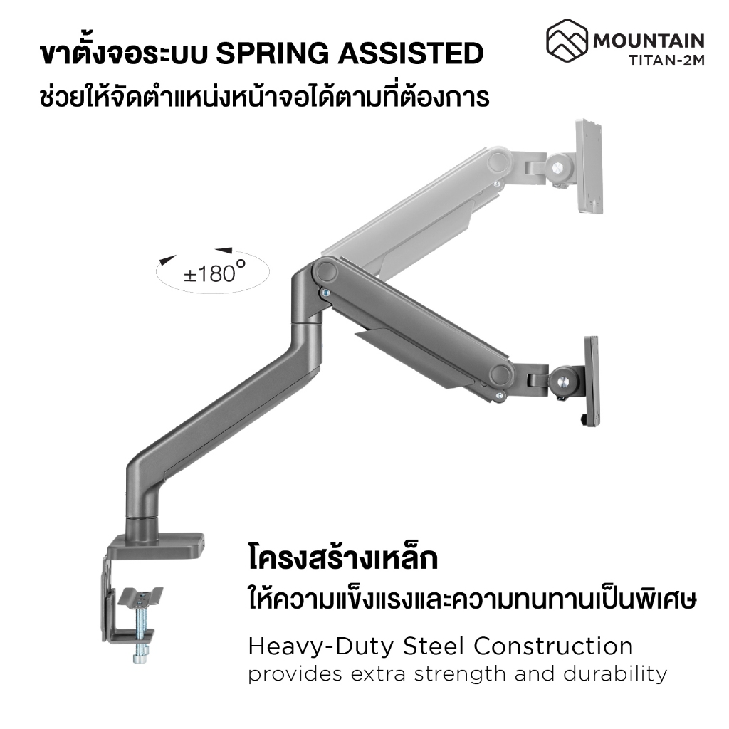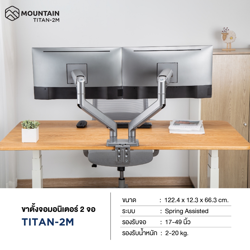 MOUNTAIN ขาตั้งจอคอม แขนจับจอ 2 จอ TITAN-2M รองรับจอ 17"-49" ใช้กับจอโค้งได้ HEAVY-DUTY MONITOR ARM