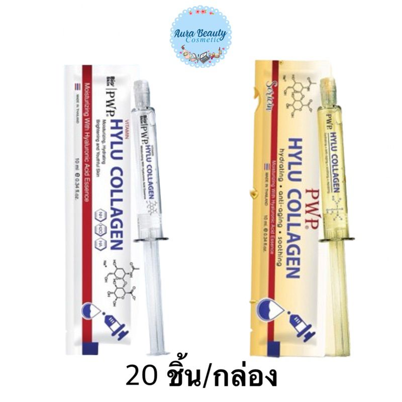 (20ชิ้น/กล่อง) PWP Hylu Collagen Serum 10ml เซรั่มไฮยา คอลลาเจน ผิวชุ่มชื้น เนื้อบางเบา ซึมไว มี 2 สูตร