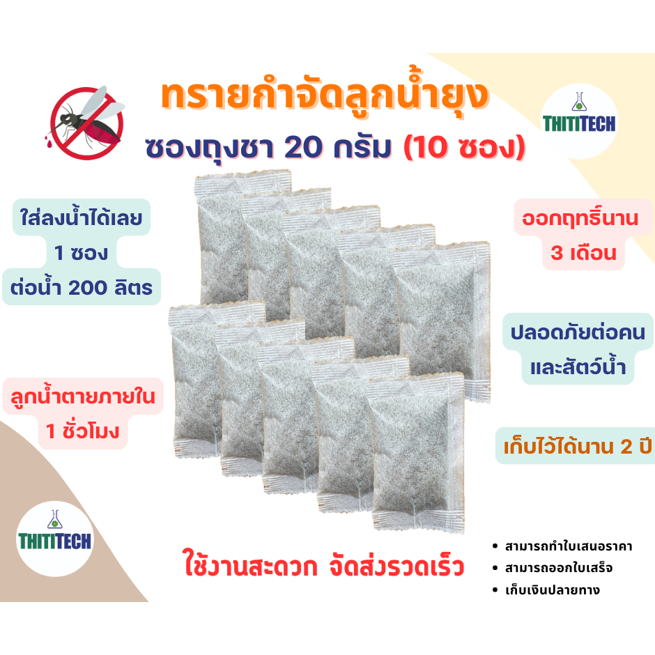 ทรายกำจัดลูกน้ำแบบซองชา ทรายอะเบท ขนาด 20 กรัม/ซอง (จำนวน 10 ซอง) สินค้าพร้อมส่ง ออกใบเสร็จทักแชท