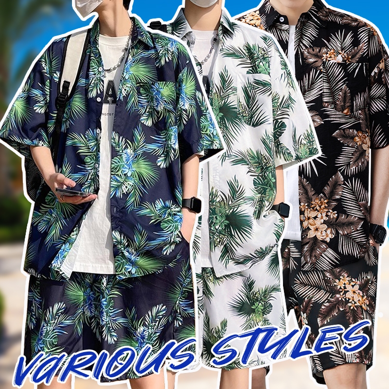 🏝️สําหรับผู้ชายเสื้อเชิ้ตชายหาดไซส์ใหญ่สําหรับผู้ชาย+กางเกงขาสั้นสําหรับผู้ชายชุดฮาวาย