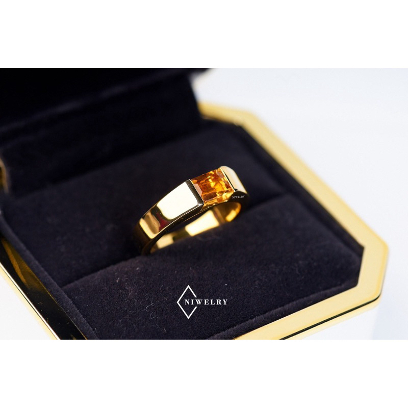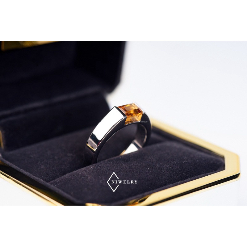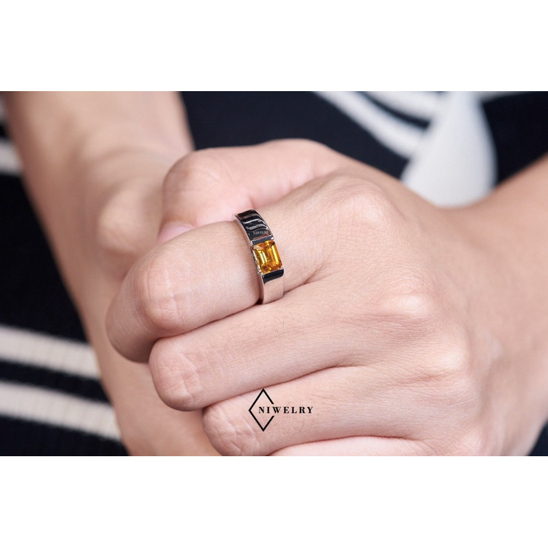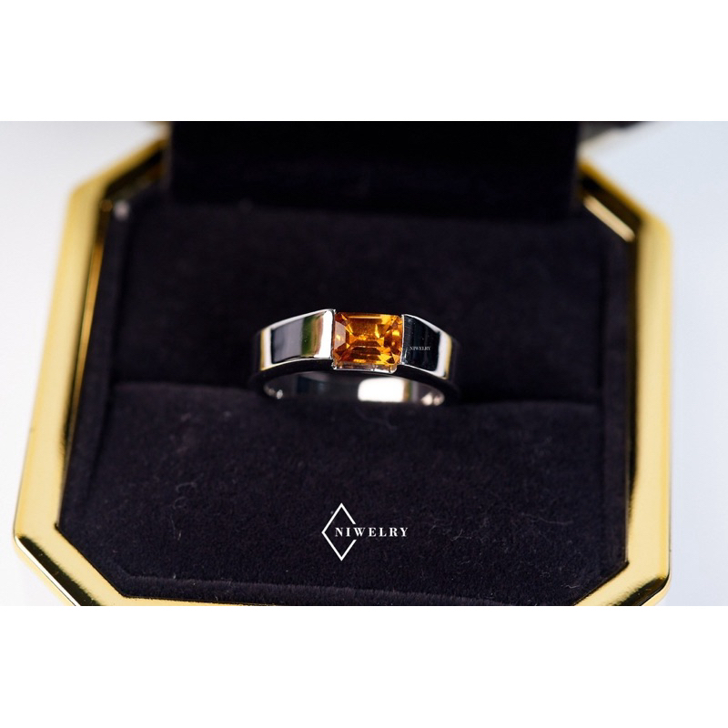 แหวนพลอยซิทริน Citrine แท้ รุ่น Classic Octagon ตัวเรือนเงินแท้ แจ้งไซส์ในข้อความ พร้อมใบรับประกัน