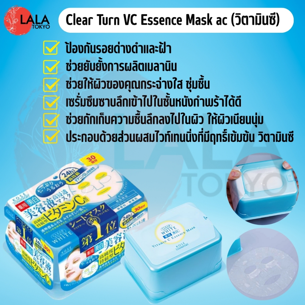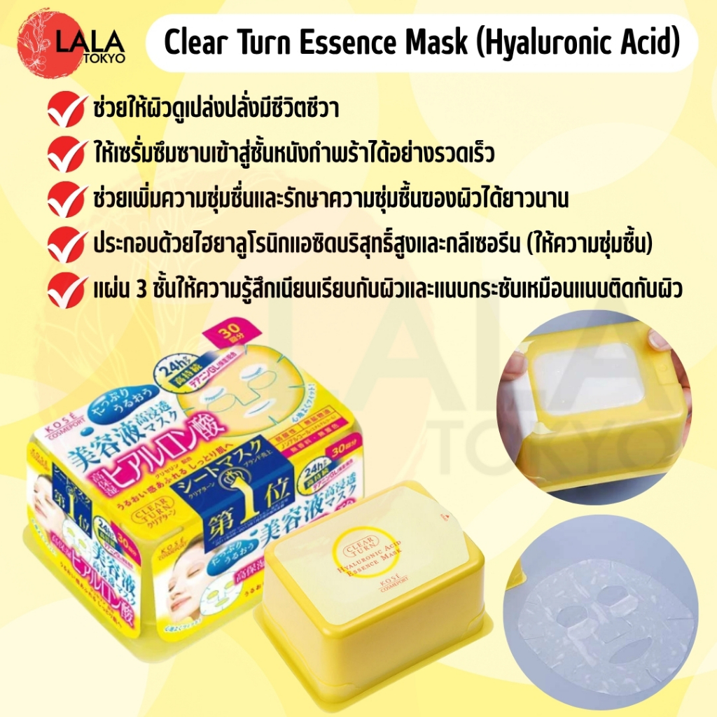 แผ่นมาส์กหน้าบำรุงผิว สูตรเข้มข้น 30แผ่น/กล่อง KOSE Cosmeport Clear Turn Mask สูตรอ่อนโยน