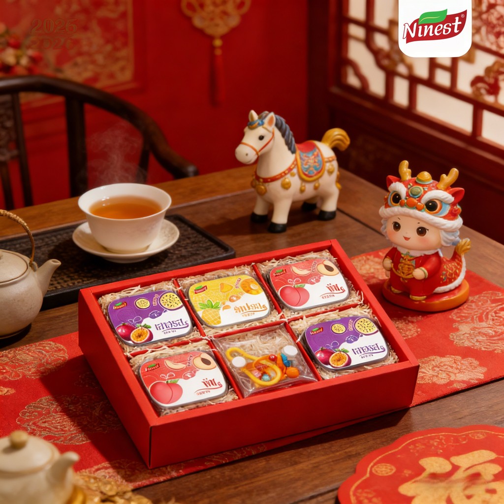 Ninest Mints ตรุษจีน ลมหายใจหอมสดชื่น น้ำตาล 0% รสผลไม้: พีช สับปะรด เสาวรส เย็นสดชื่น