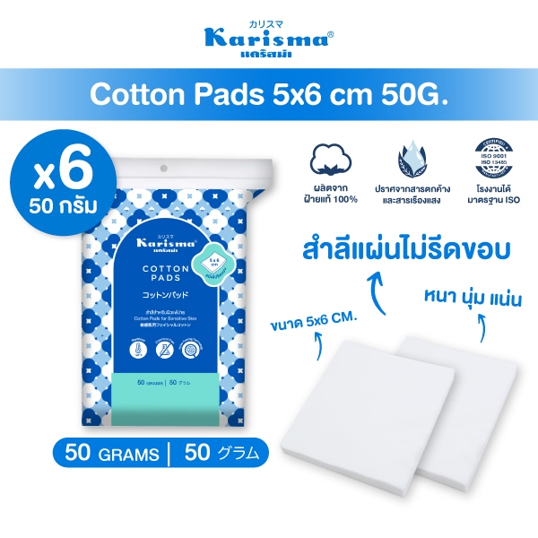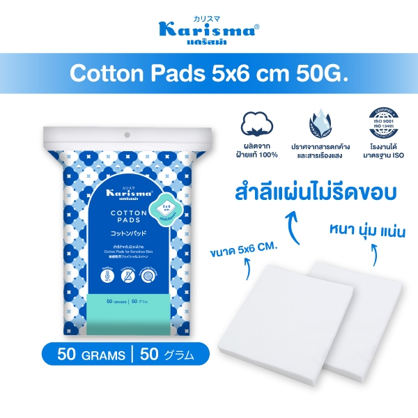 Karisma แคริสม่า สำลีเช็ดหน้า สำลีแผ่นไม่รีดขอบ 50 กรัม