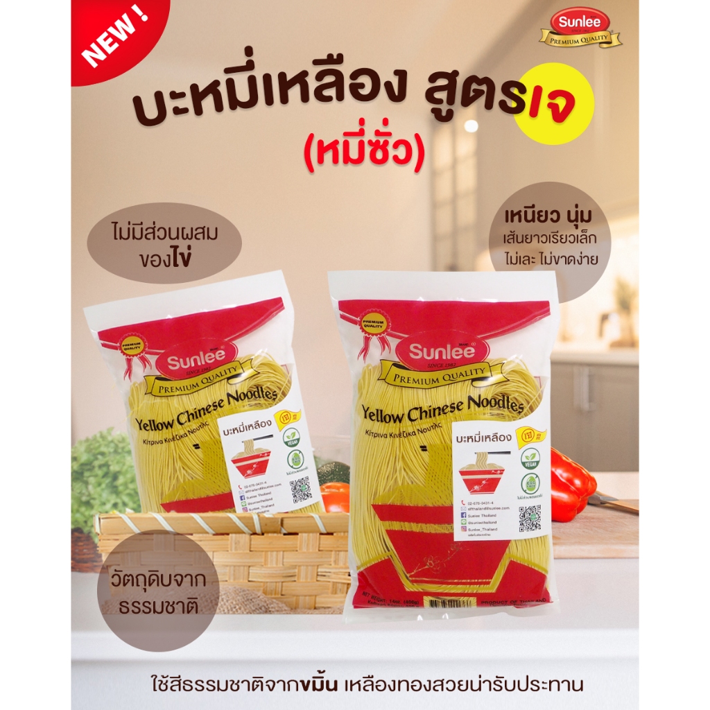 [แพ็ค 2 ชิ้น] ซันลี บะหมี่เหลือง 400 กรัม Yellow Chinese Noodle (Sunlee Brand) 400g