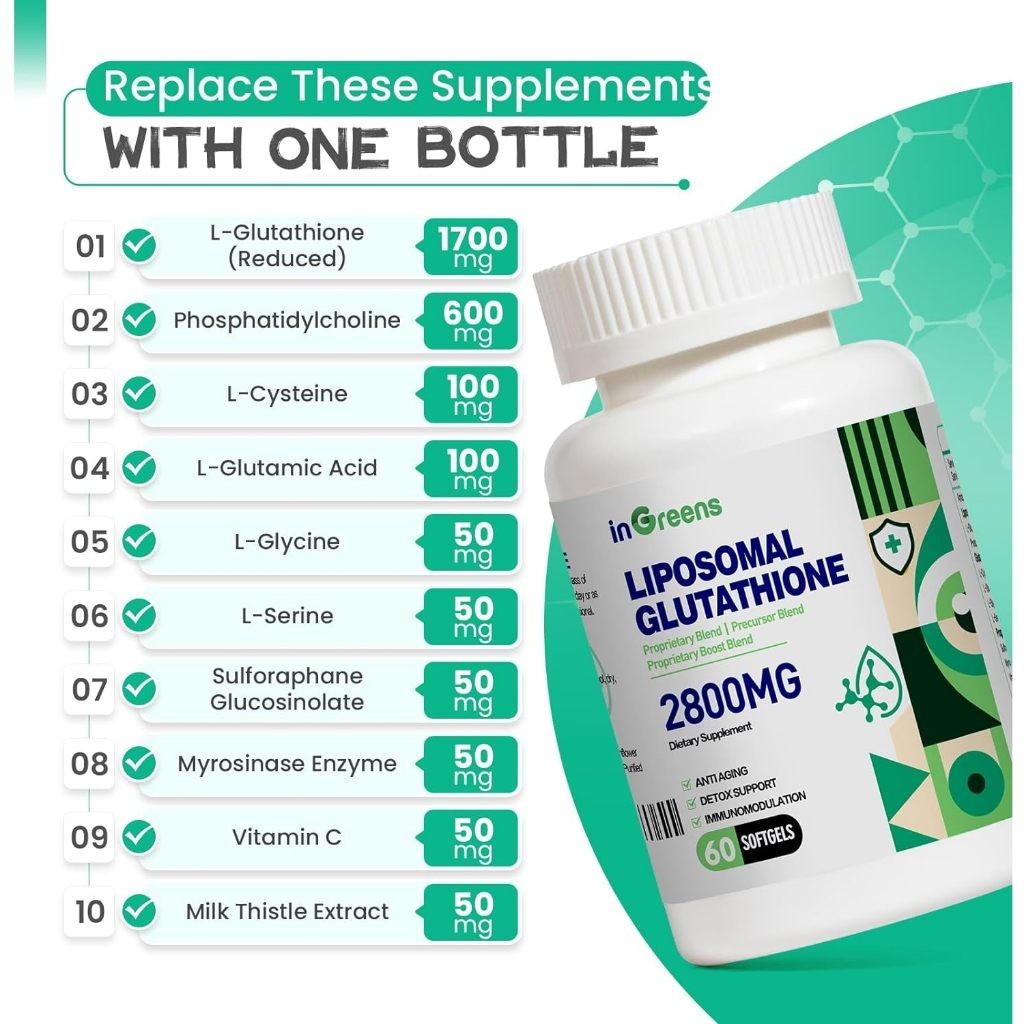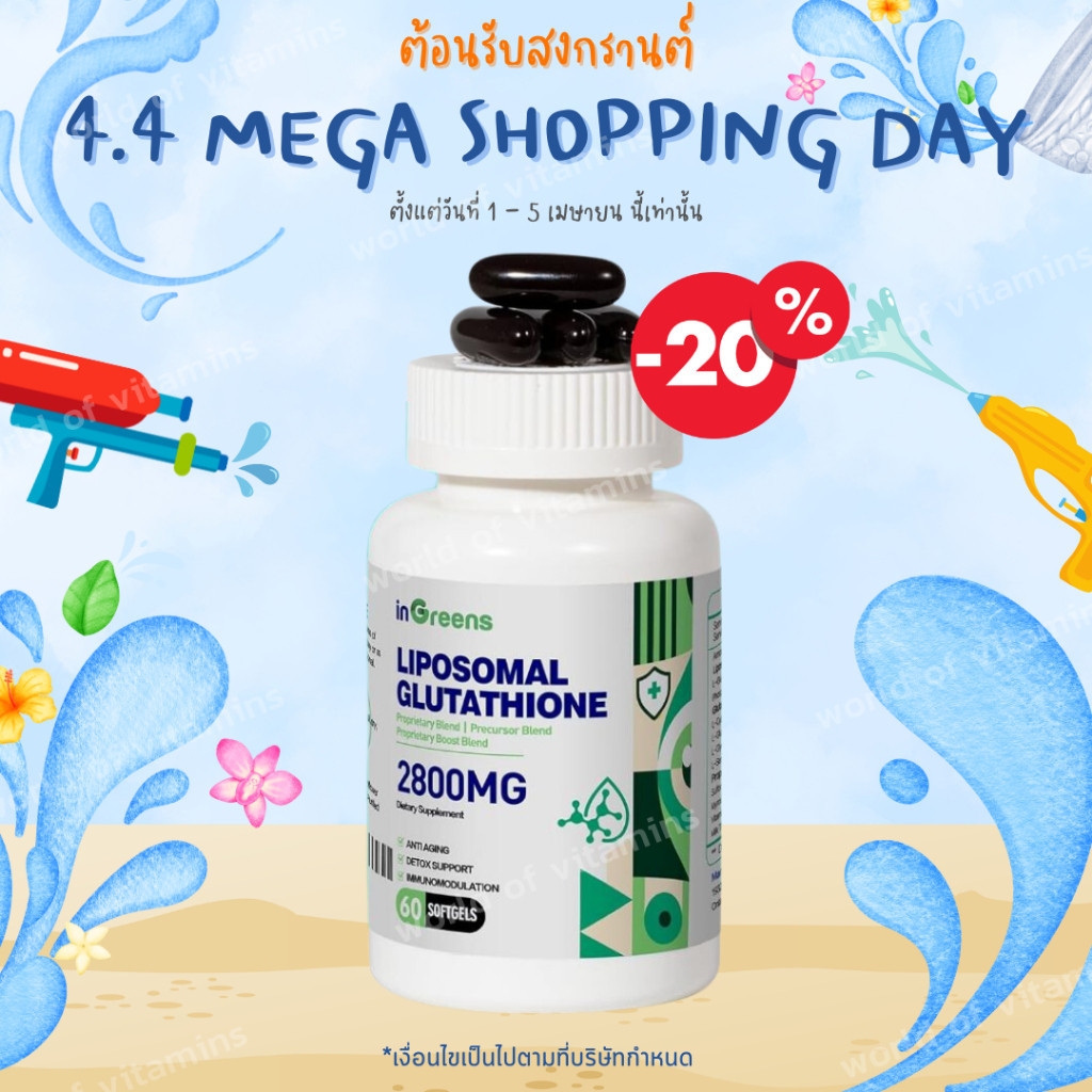 กลูต้าไธโอน inGreens Liposomal Glutathione 2,800mg , 60 Softgels (Sku.2440)