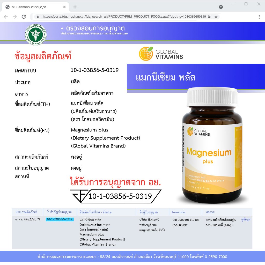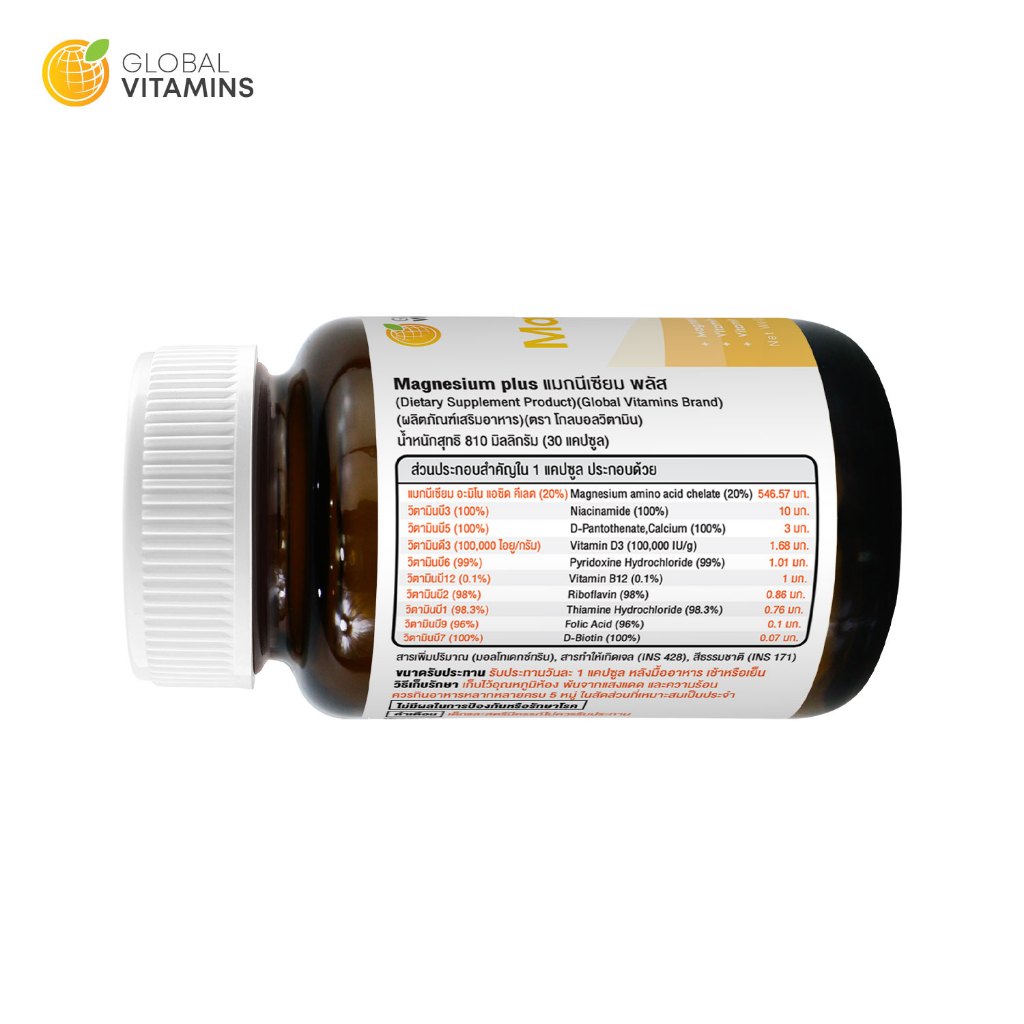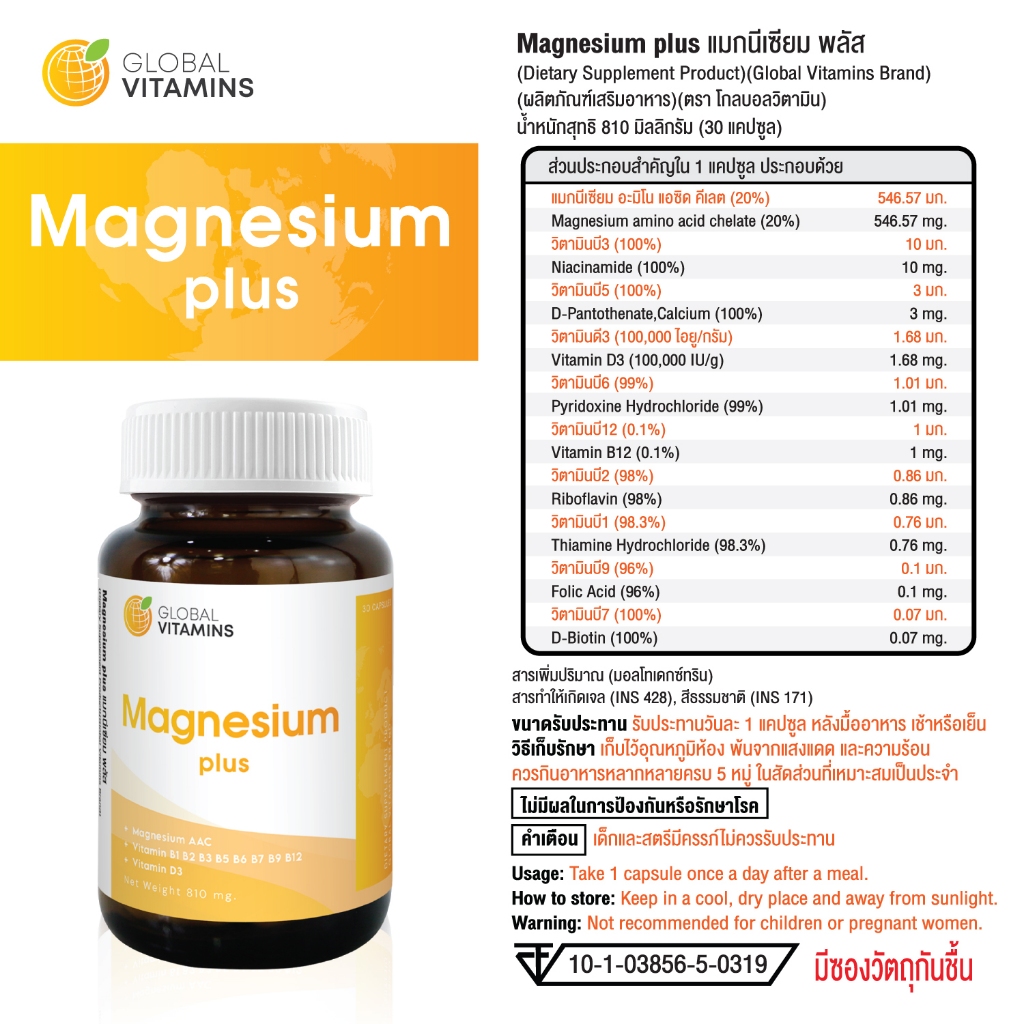 แมกนีเซียม พลัส x 1 ขวด โกลบอลวิตามิน Magnesium plus Global Vitamins