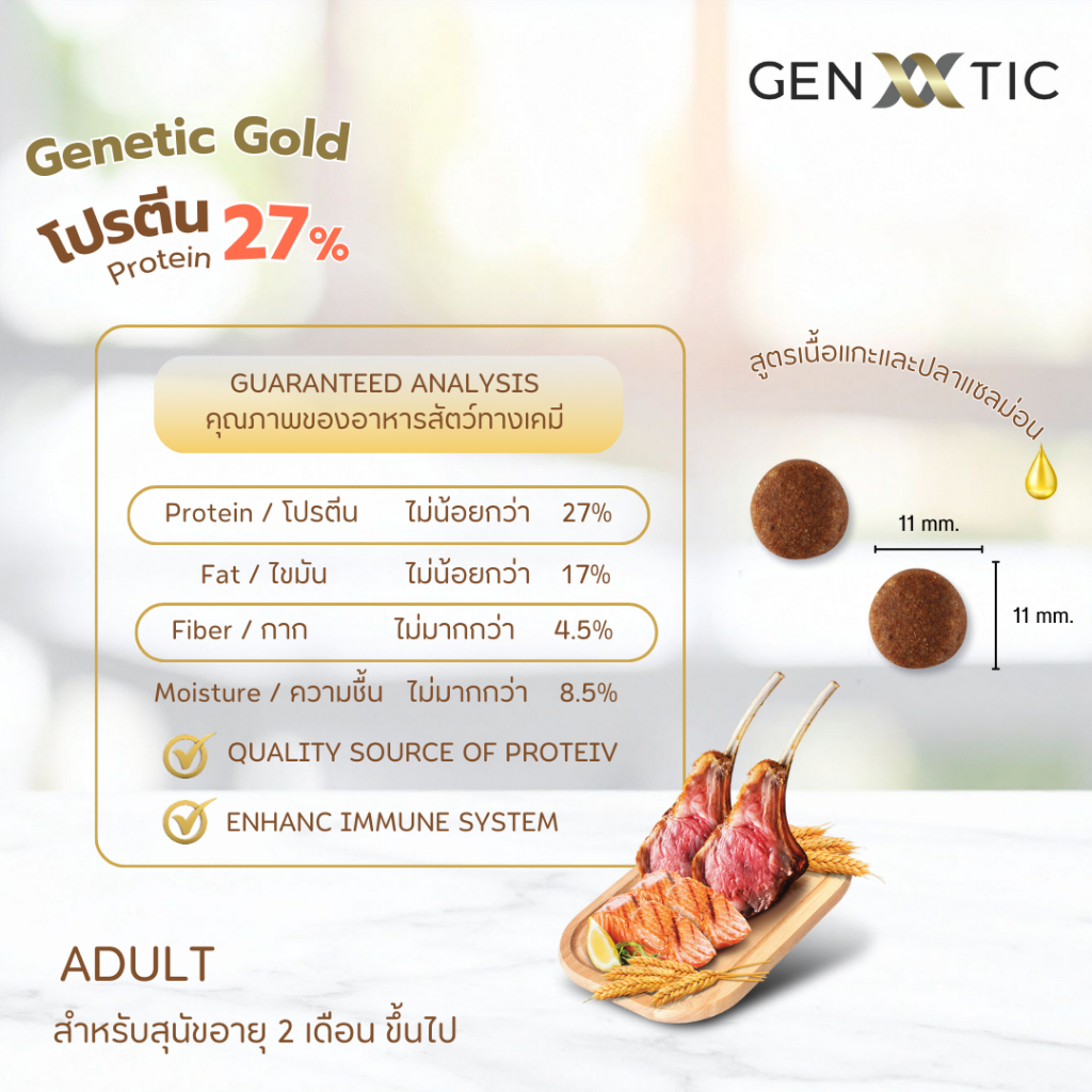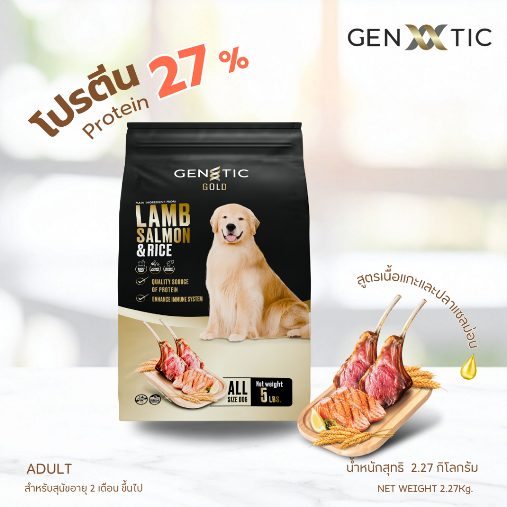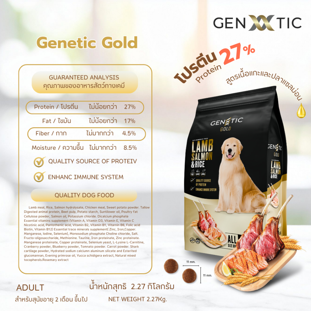 อาหารสุนัข Genetic Gold สูตรเนื้อแกะและปลาแซลมอน ขนาด 2.27Kg.
