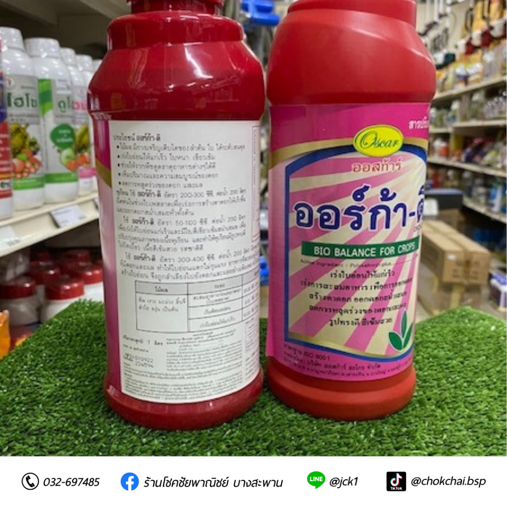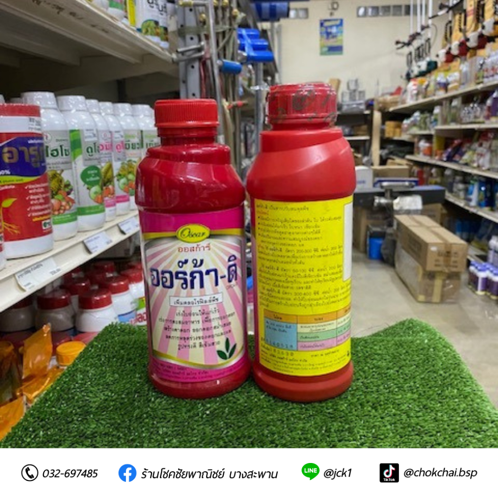 ออร์ก้า-ดี เพิ่มคลอโรฟิลล์พืช เร่งใบอ่อนให้แก่เร็ว เร่งการสะสมอาหาร ลดการหลุดร่วง ขนาด 1 ลิตร