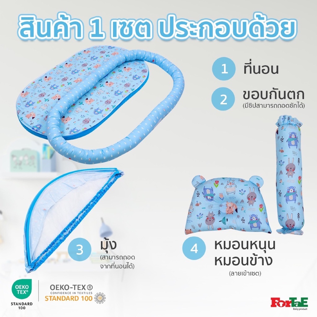 Fortae Baby ที่นอนเด็กอ่อนพร้อมมุ้งครอบ ที่นอนมุ้งขนาดใหญ่ ถอดซักได้ ฟอร์เต้ รุ่นNA032