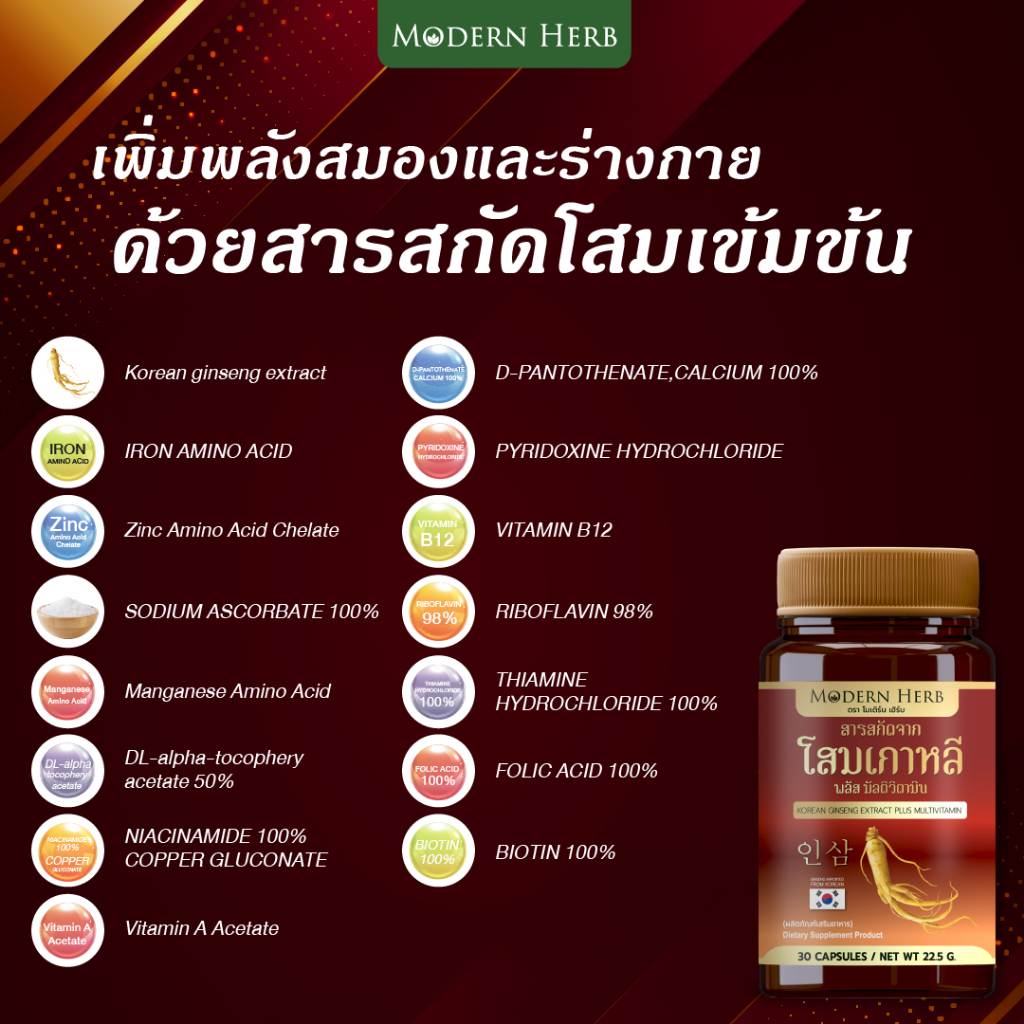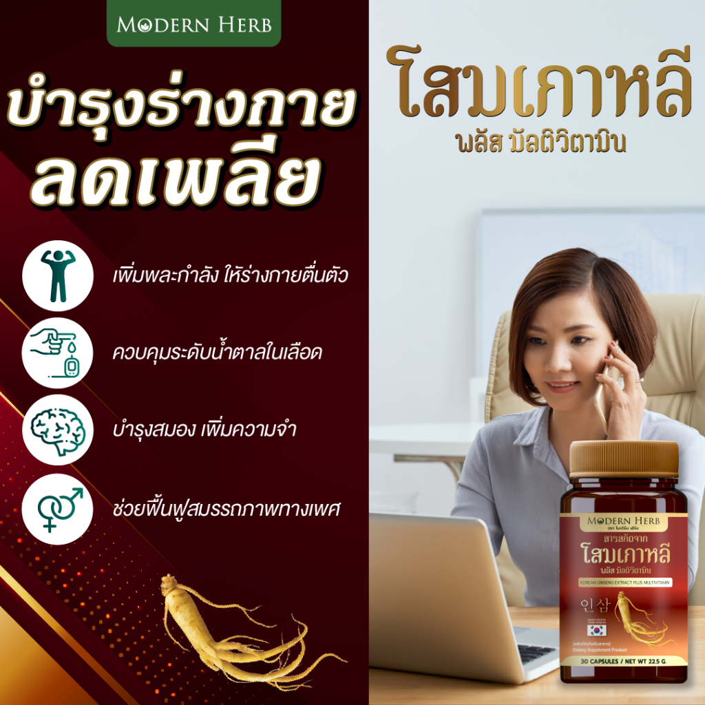 Korean Ginseng Extract Plus Multivitamin โสมเกาหลีแท้ 100% ร่างกายแข็งแรง เพิ่มพลัง บำรุงสมอง