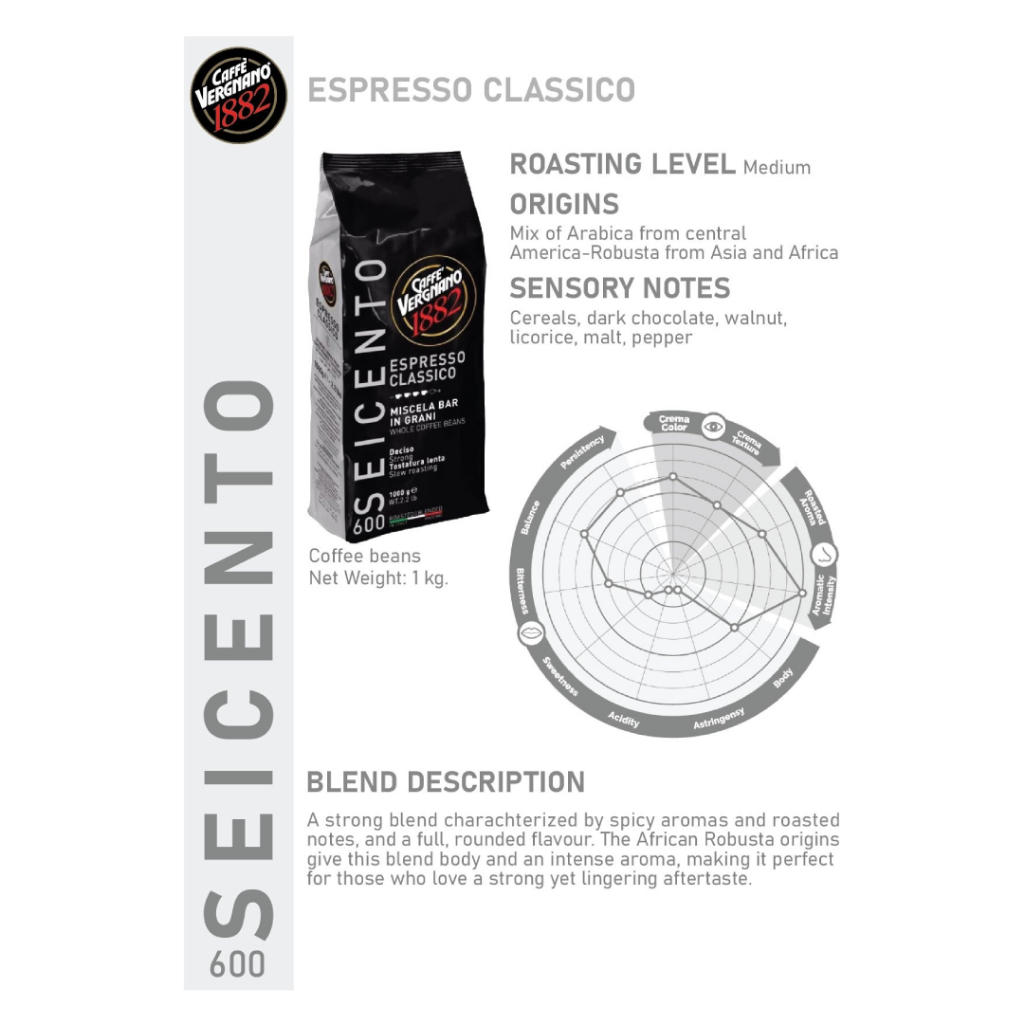 Caffè Vergnano Classico 600 1KG. เมล็ดกาแฟคั่วกลาง 1 กิโลกรัม