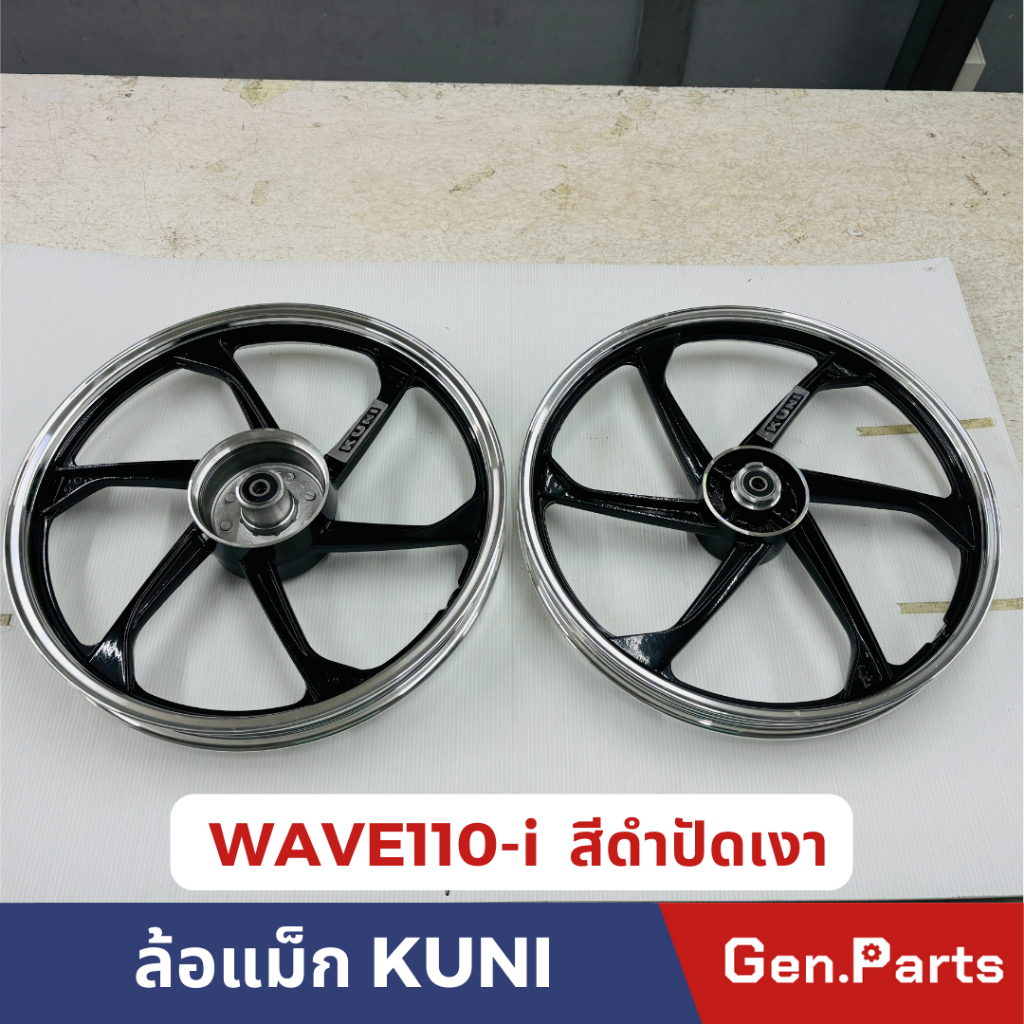 ล้อแม็ก ดำปัดเงา เวฟ110i เก่า WAVE110i จานดิส4รู พร้อมลูกปืนล้อ หน้า140-17 หลัง160-17 ยี่ห้อKUNI