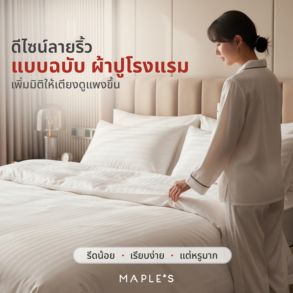 MAPLE'S ผ้าปูรัดมุม รุ่นลายริ้ว 550เส้น กันไรฝุ่น 11-14นิ้ว 5ฟุต 6ฟุต ผ้าปูกันฝุ่น striped bedsheet